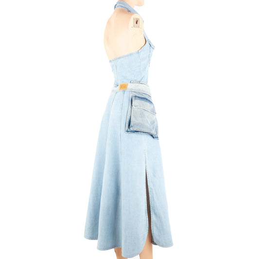 Diesel Halterneck Vintage Belted Denim Maxi Dress