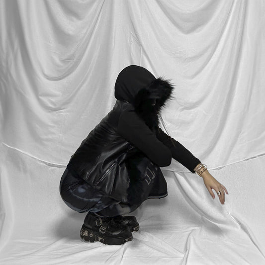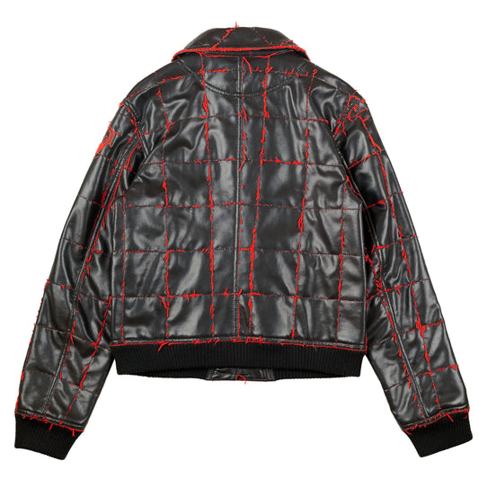 Diesel Style Lab Black Moto Vintage Jacket with Fluffy Cotton Stitching