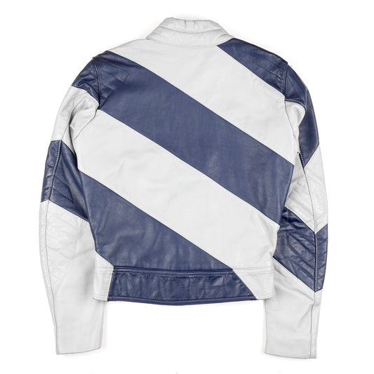 RARE Harro Kombi Striped Two-Toned Grey / Navy Leather Moto Jacket (S)
