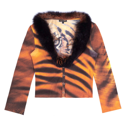 Roberto Cavalli 2000 Tiger Knit Cardigan Top With Faux Fur (M)