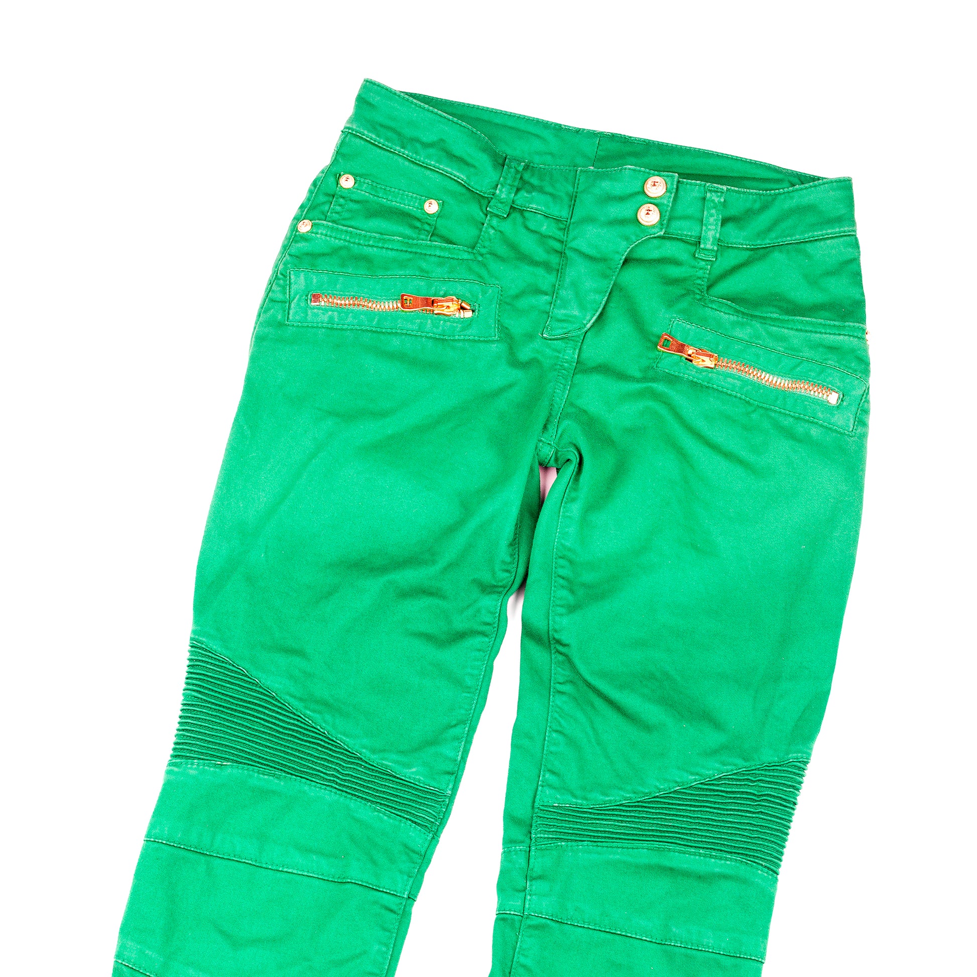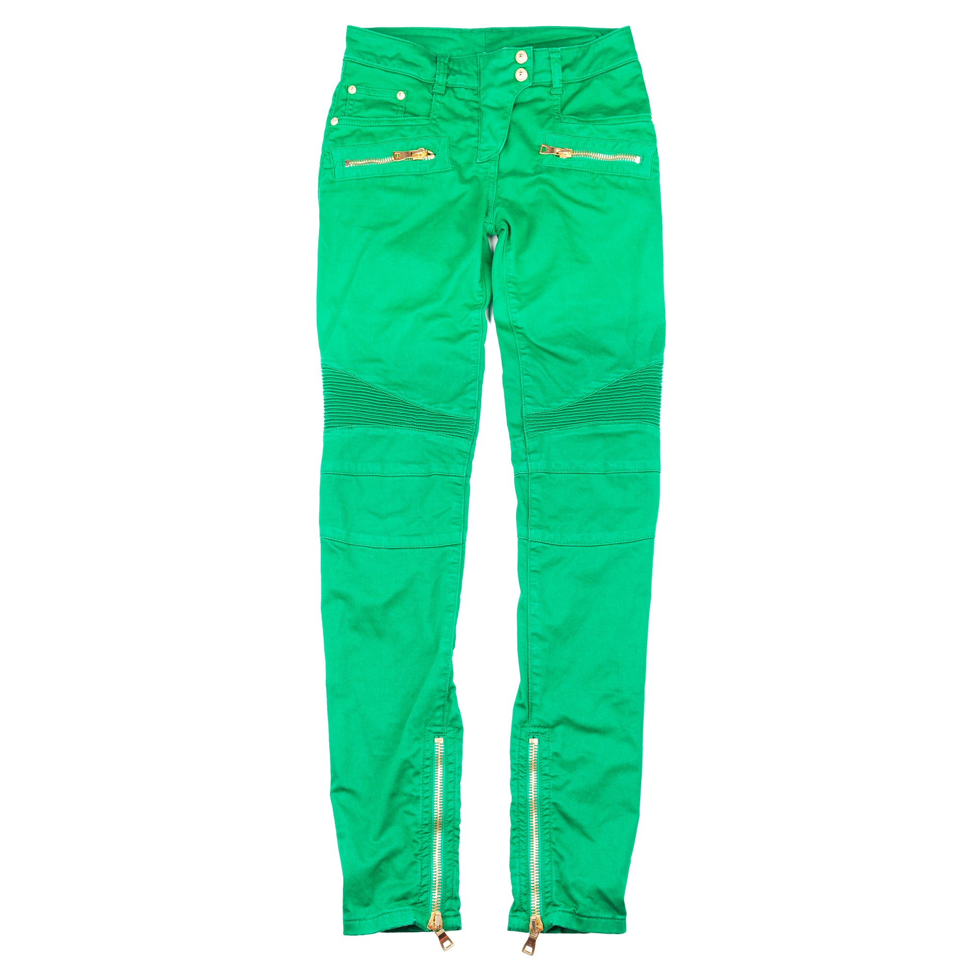 Balmain Paris Vivid Green Biker Skinny Jeans