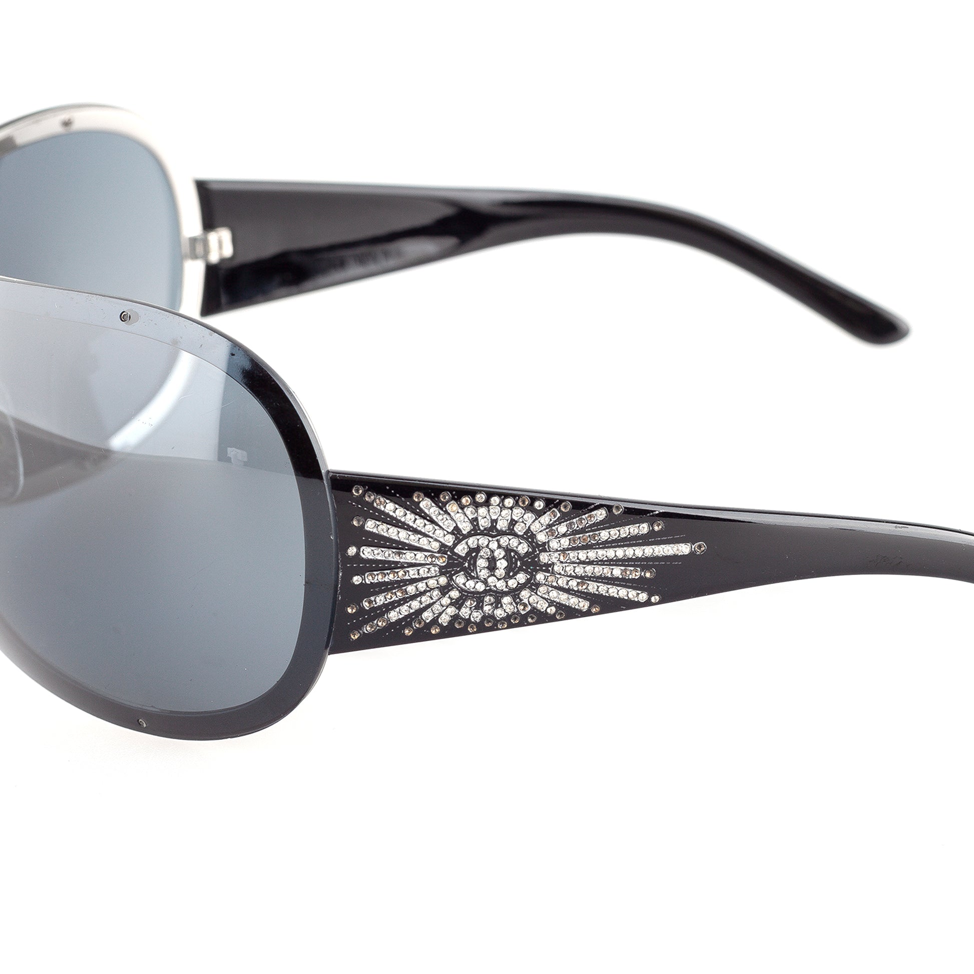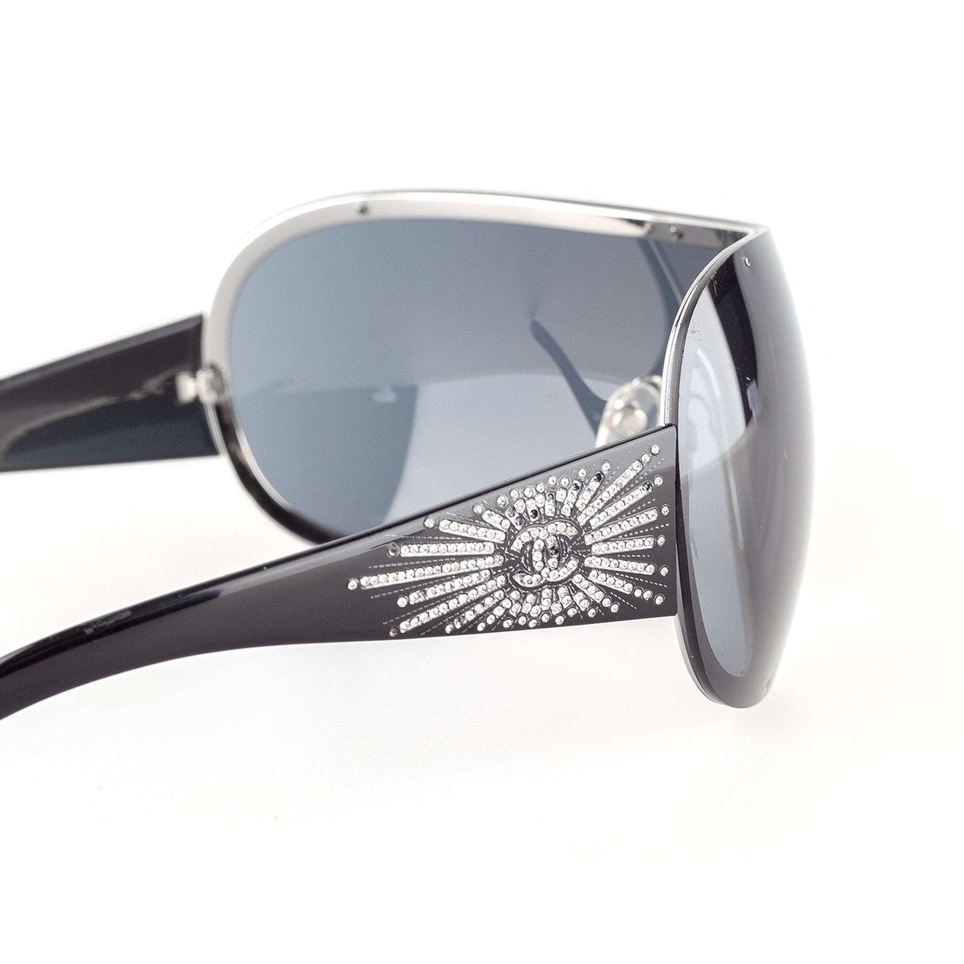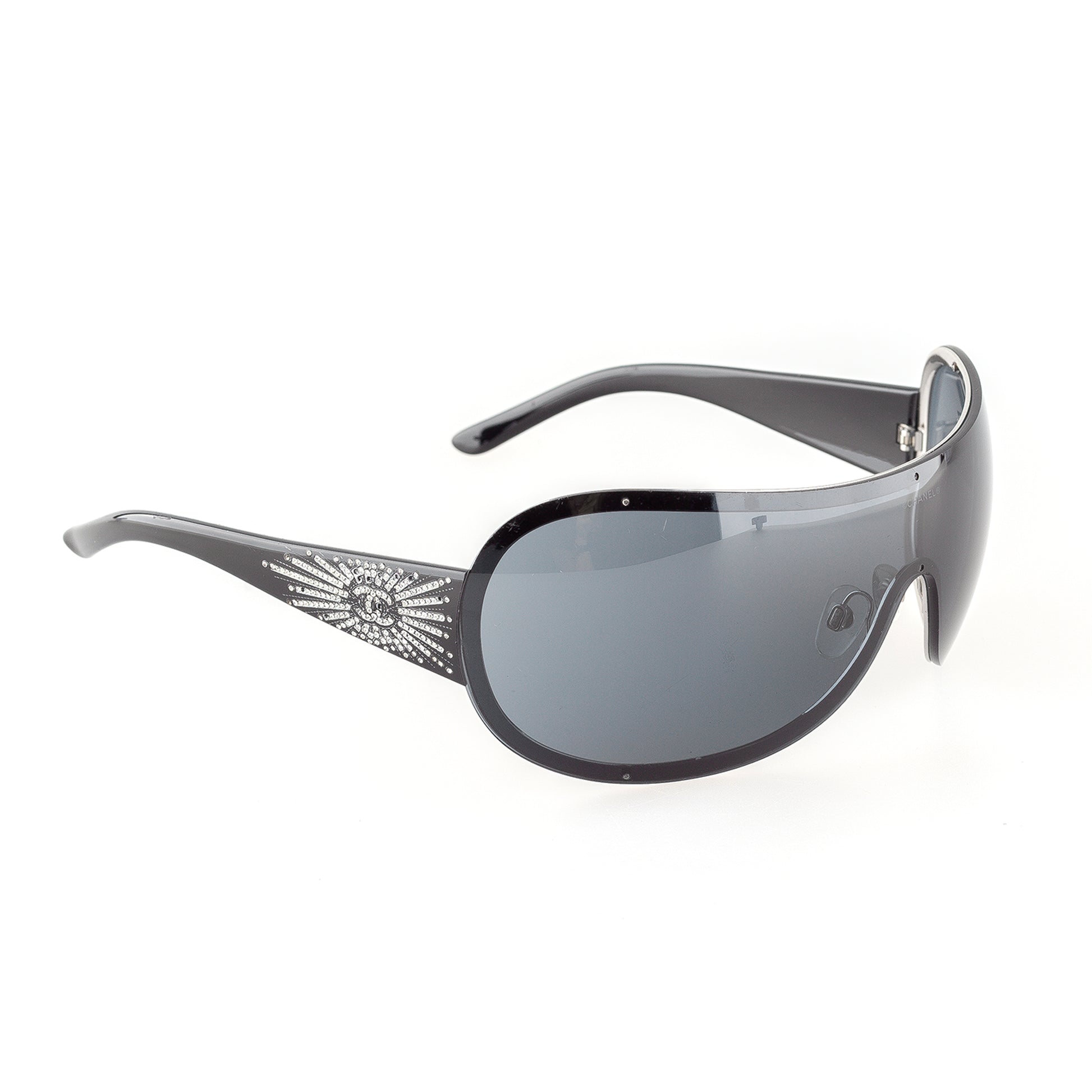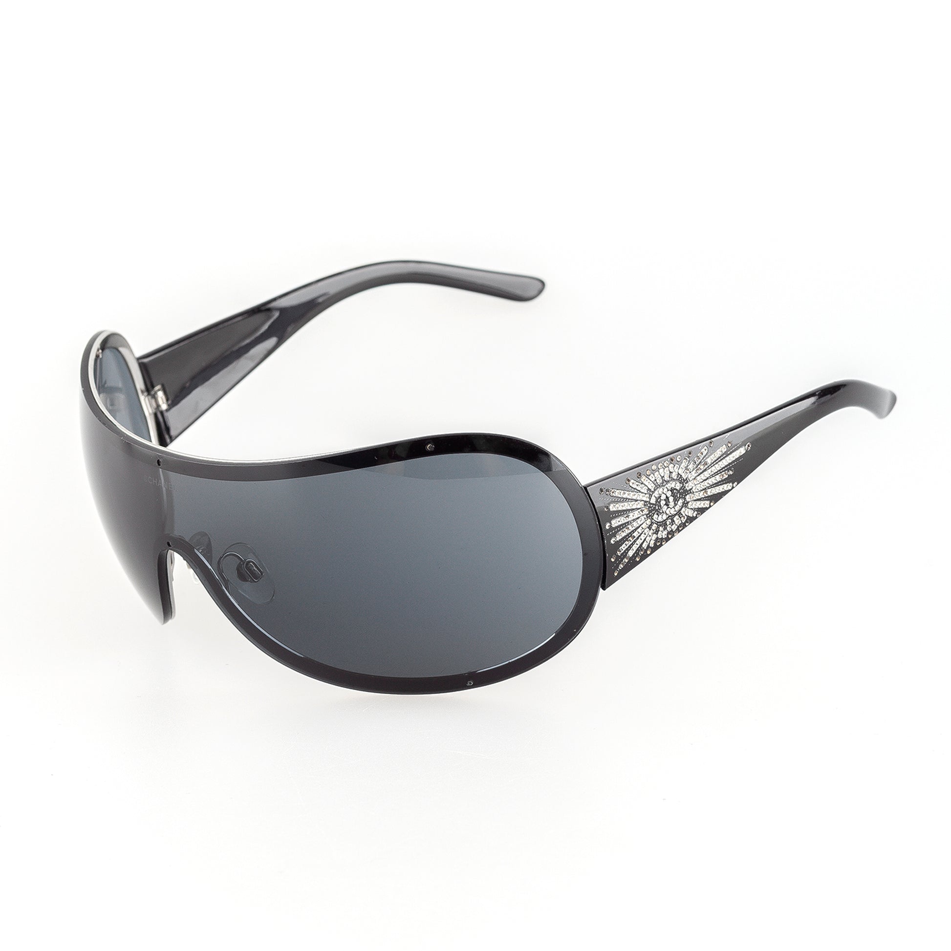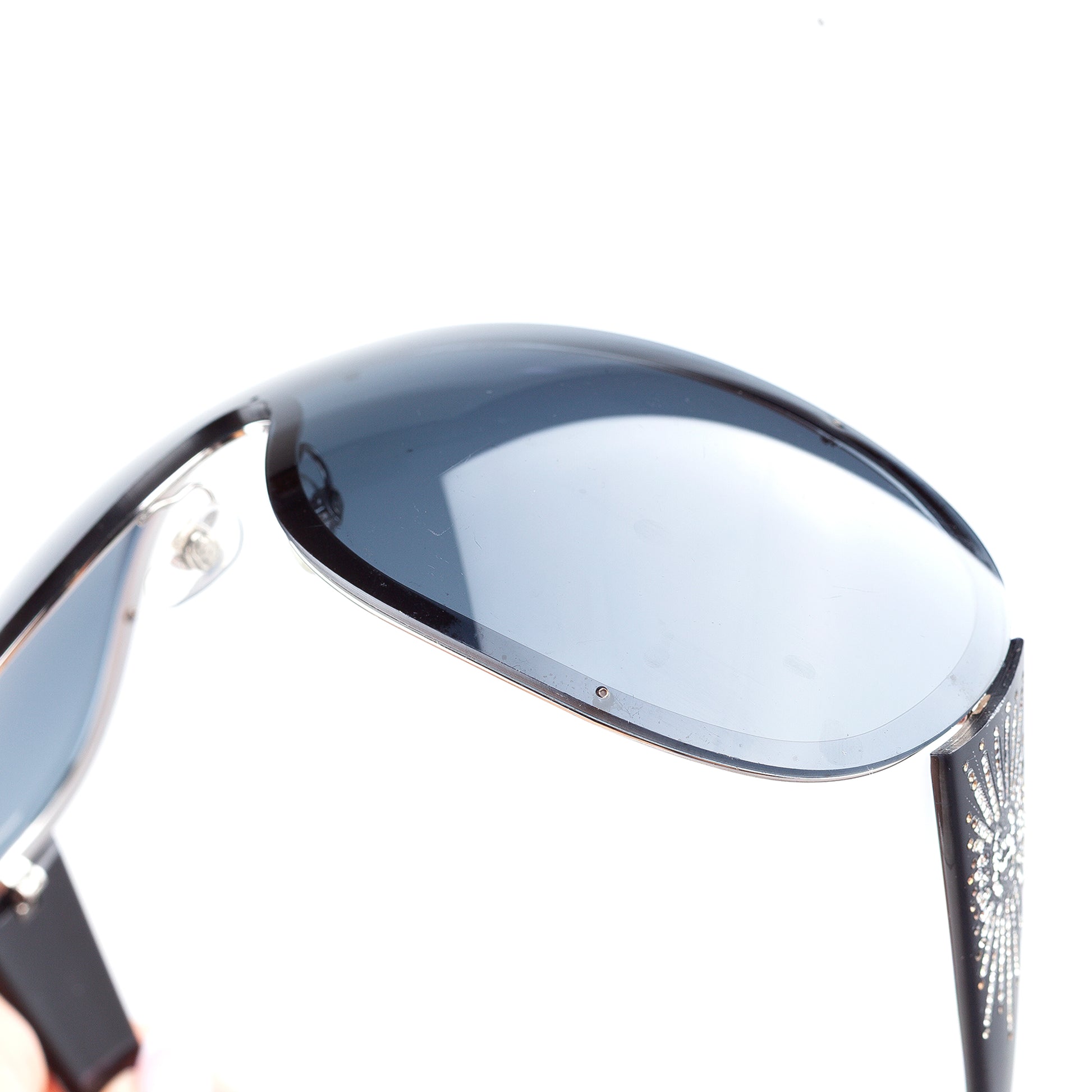 Condition: Rated 7/10, these sunglasses have been used and show some signs of wear. There are scratches on both lenses and scuffs on the arms, as well as some missing rhinestones on both sides. The inner serial number and brand stamps have faded due to use. However, these imperfections do not significantly affect the overall condition of the sunglasses, as vision remains uncompromised. Overall, they are still in usable condition.