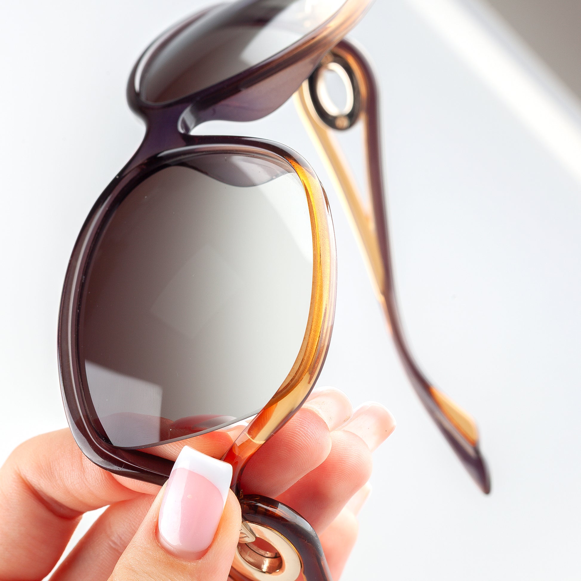 Condition: Rated 8/10, these sunglasses have been gently used and show some signs of wear. There are some minor scratches on both lenses and some scuffs on the frame as you can see on the pictures. One of the screws on the side is a bit loose. However, these imperfections do not significantly impact the overall condition of the sunglasses. They remain in great condition.