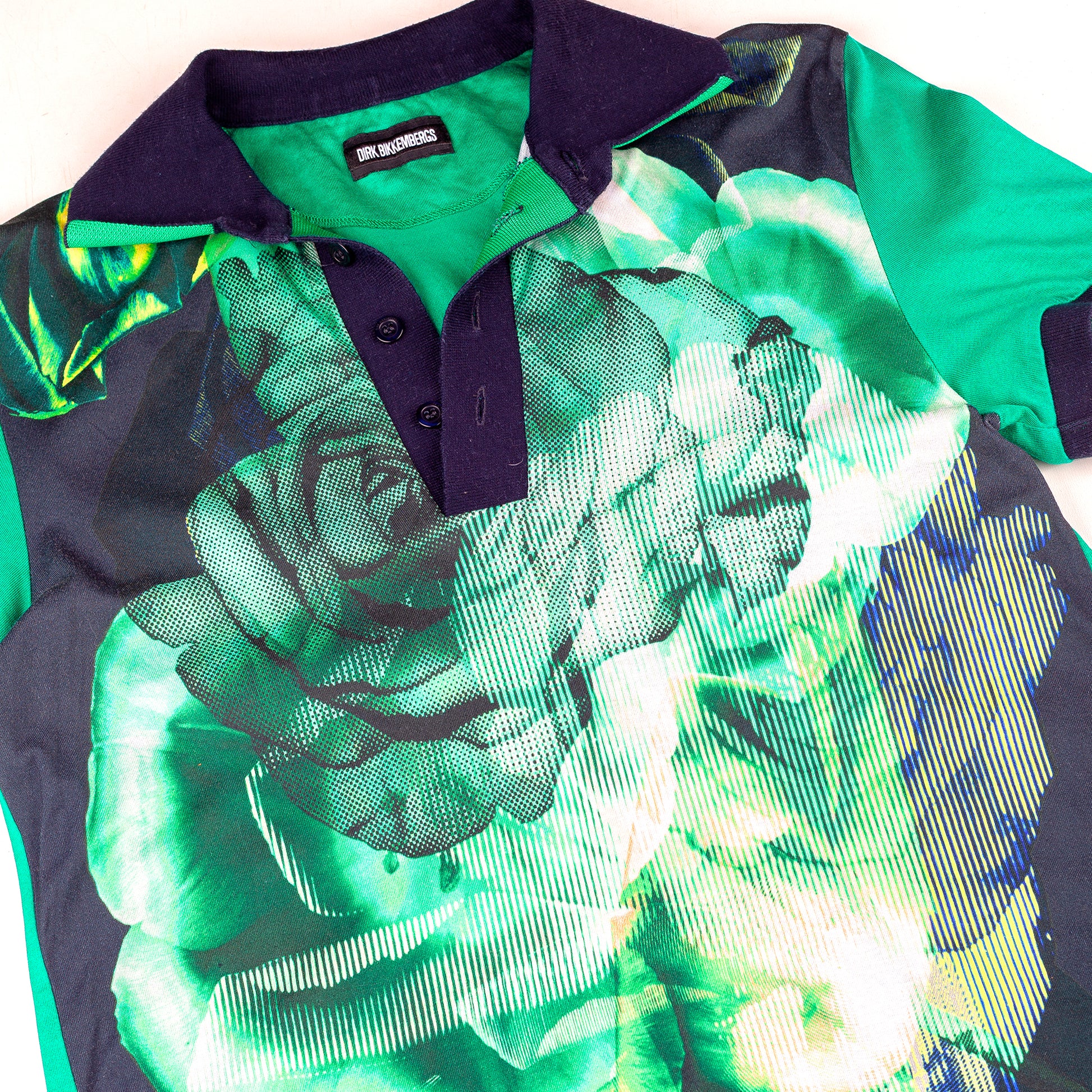 Dirk Bikkembergs Vintage Green Flower Polo Shirt Top