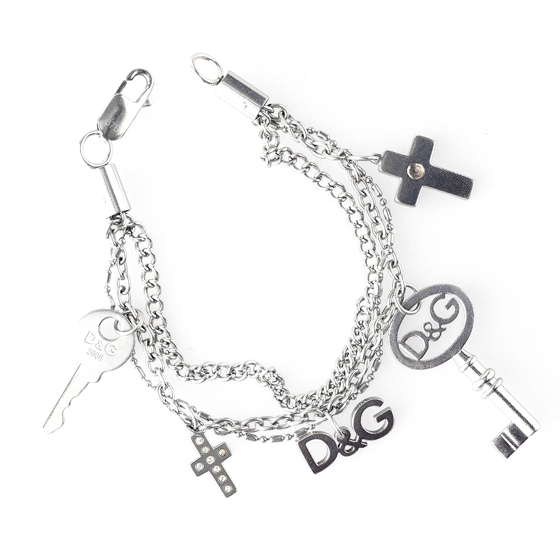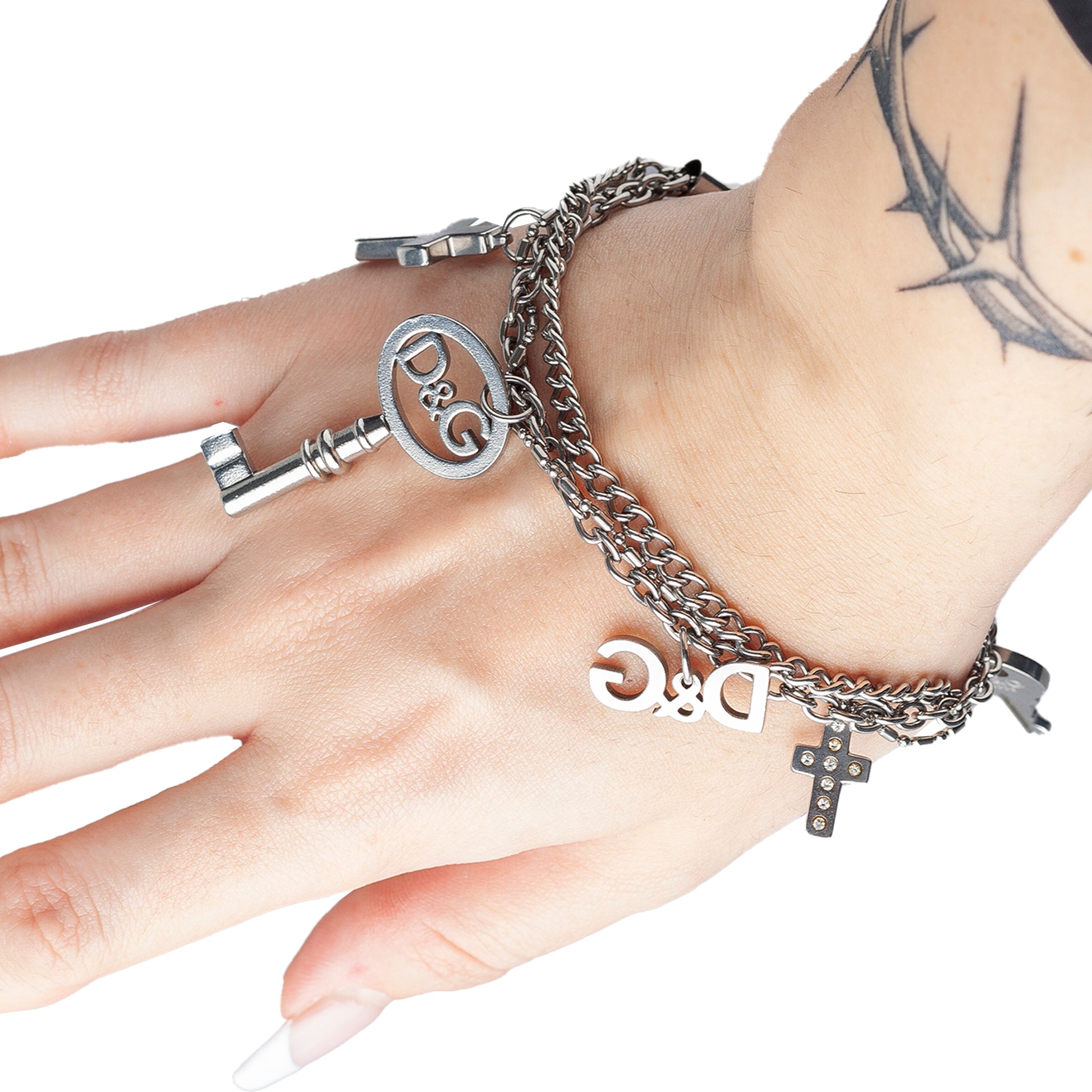 This striking bracelet features a mix of charms, including crosses, keys, and the iconic Dolce lettering.