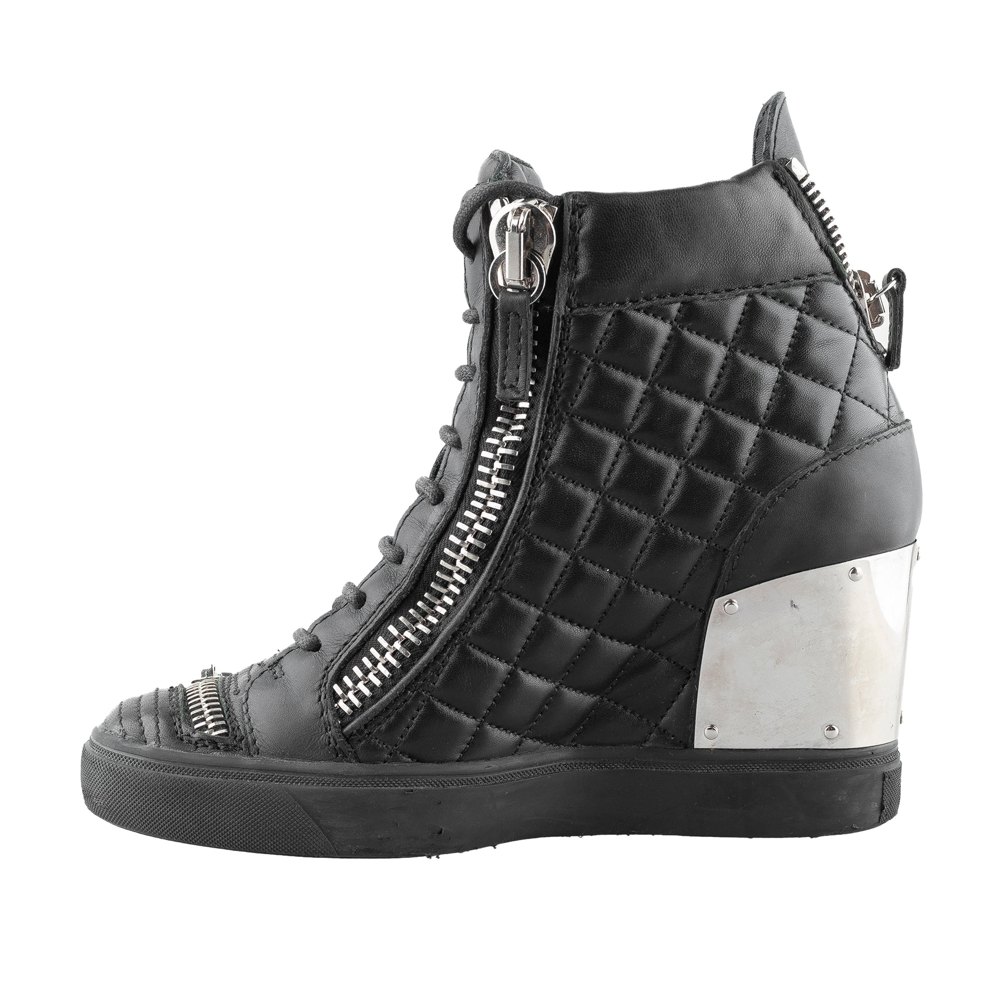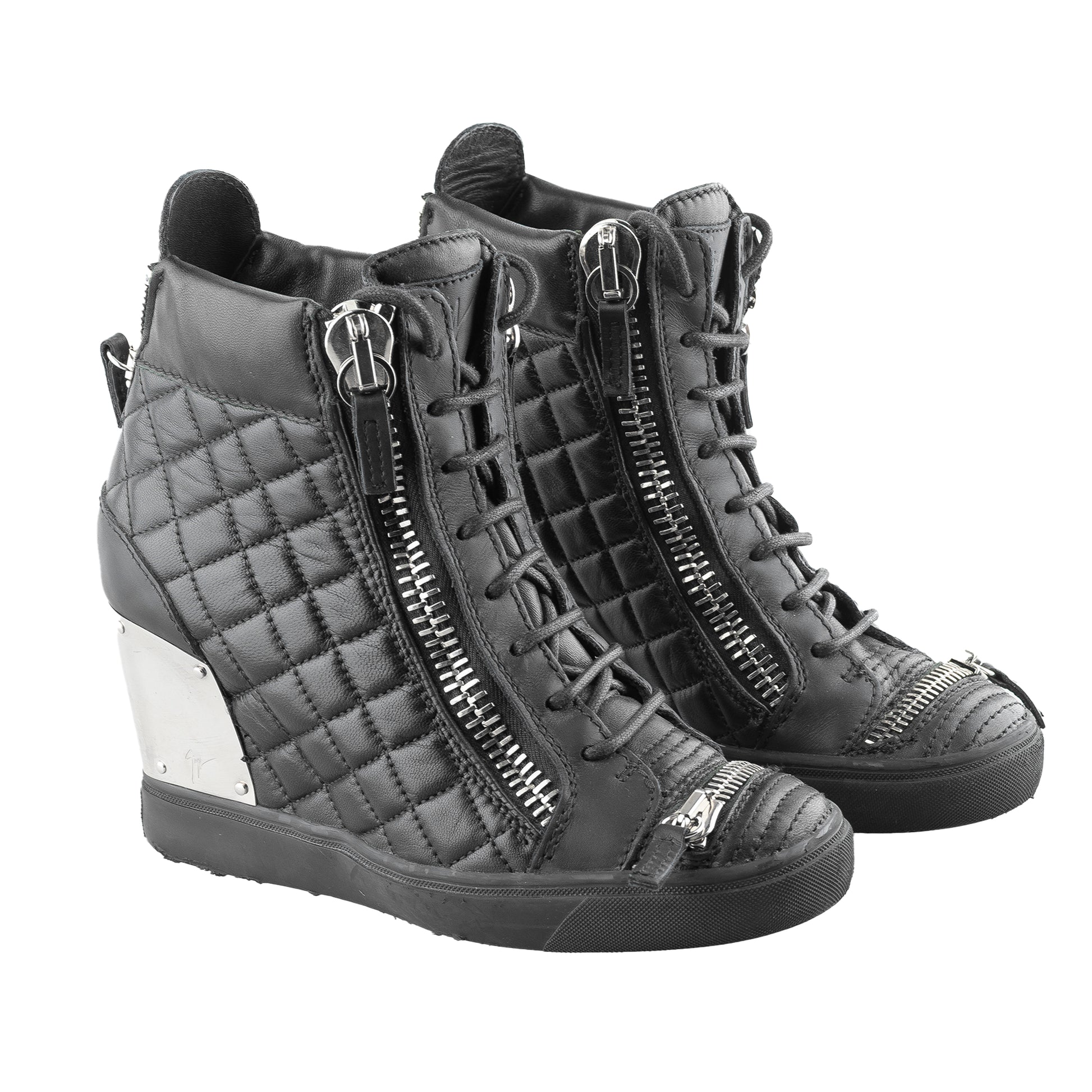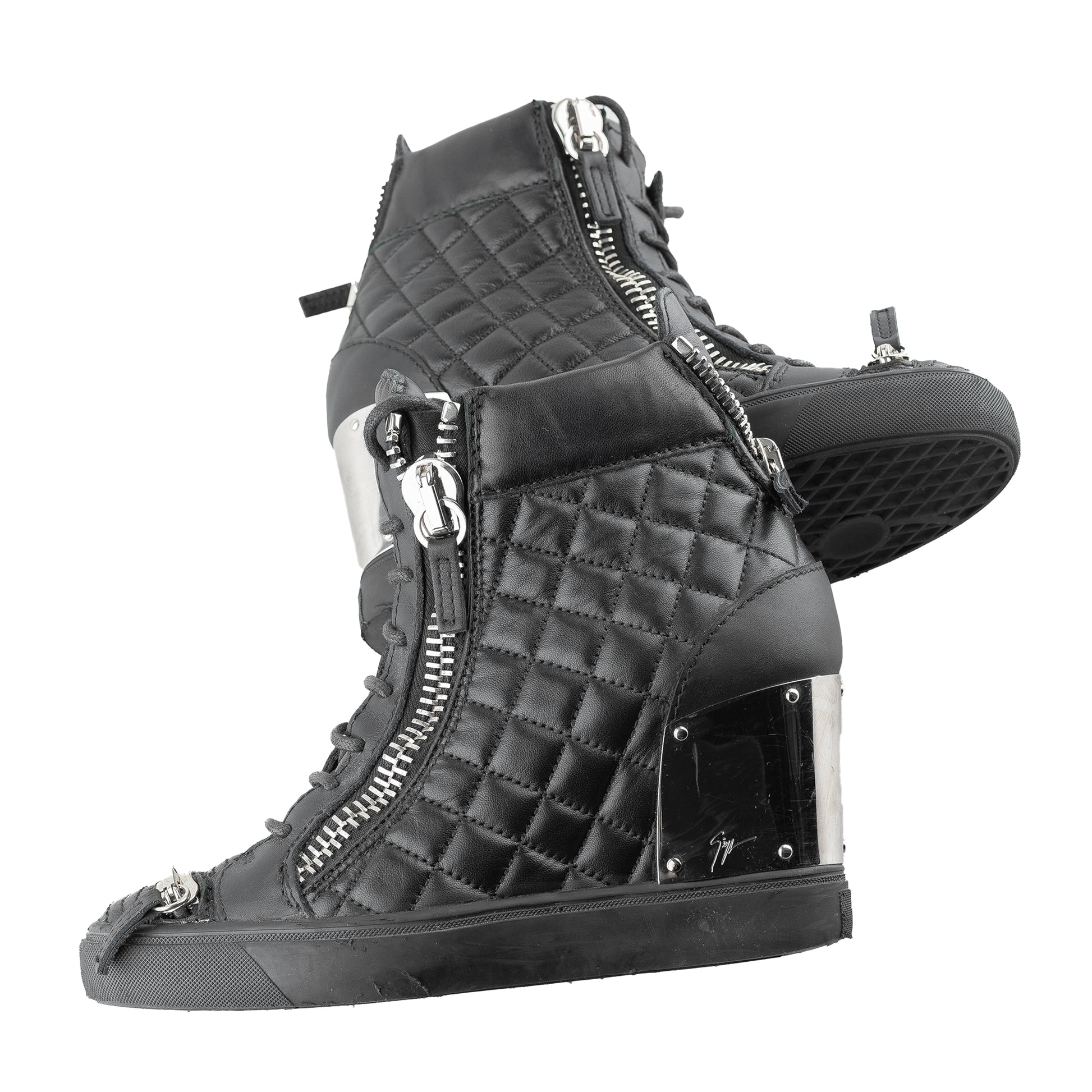 Giuseppe Zanotti Black Quilted Leather Wedge Sneakers (38 EU)