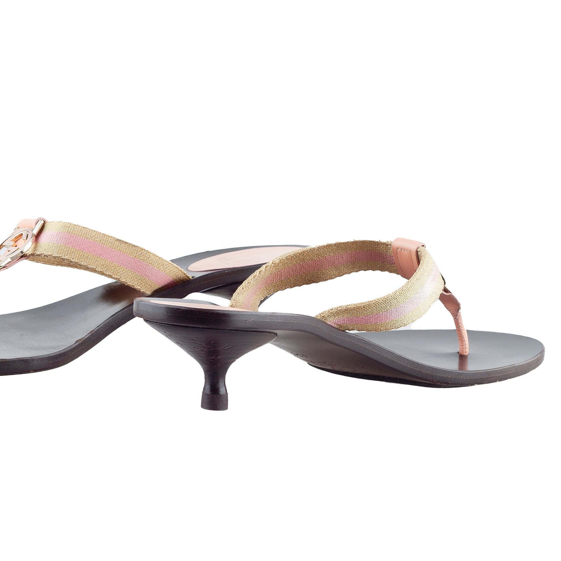 Gucci Brown Interlocking G Logo Pink Canvas Vintage Thong Heel Sandals (40 IT/41 EU)