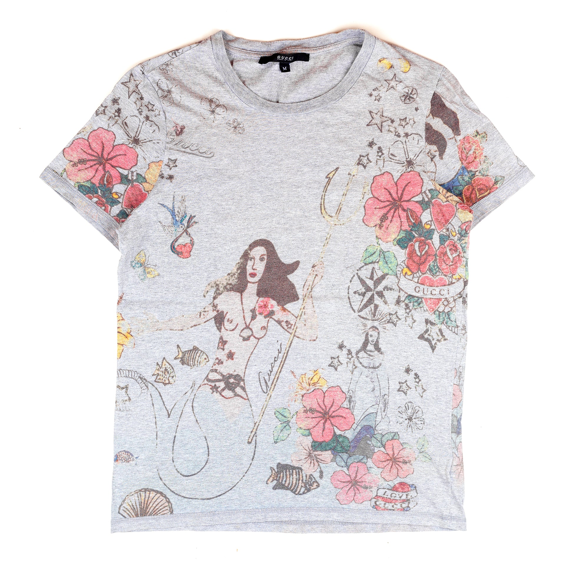 Gucci Mermaid Print Gray Vintage T-Shirt (M)