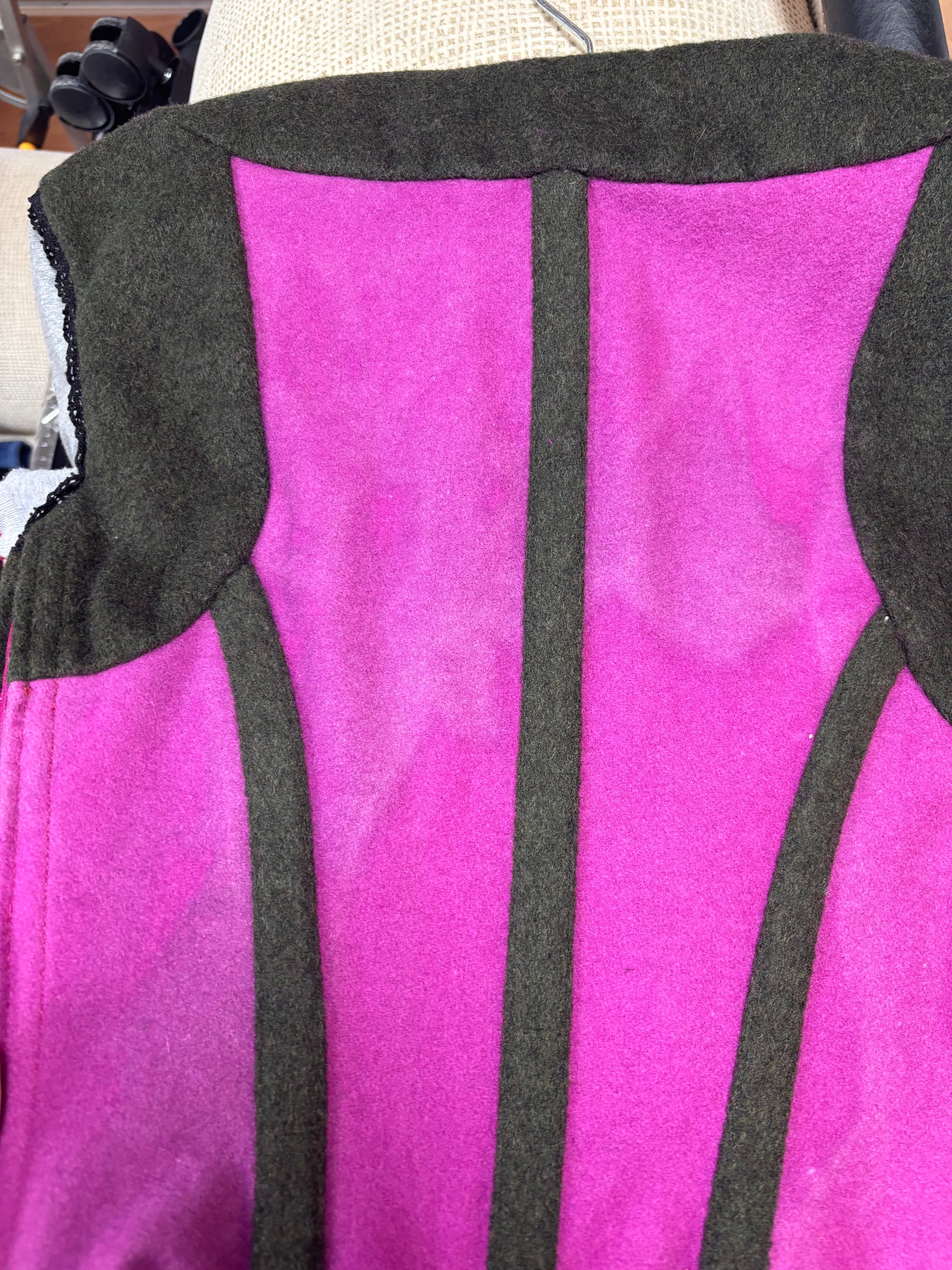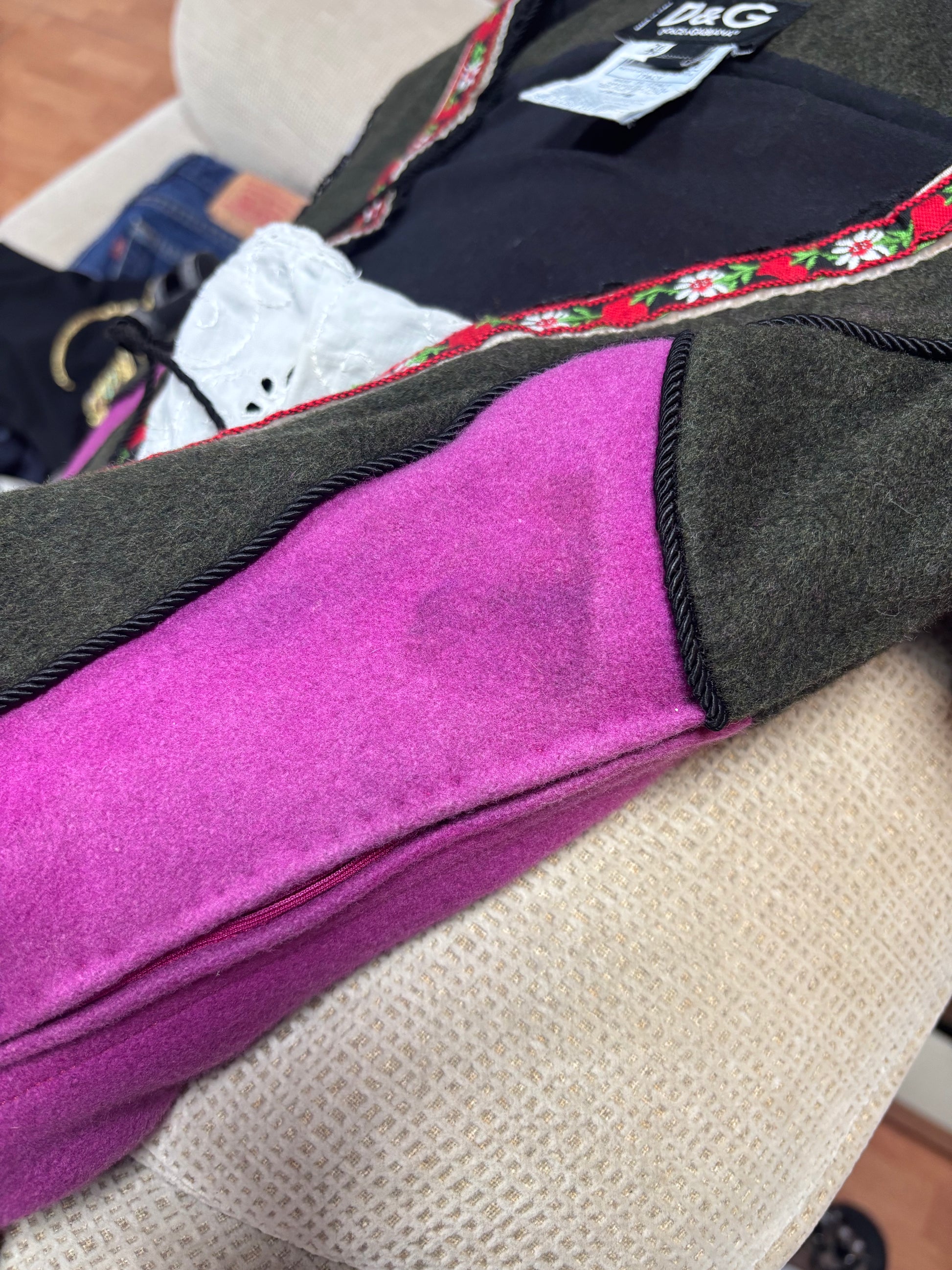 This rare and charming Dolce & Gabbana D&G Fall/Winter 2002 dirndl-inspired top features a traditional bodice with light boning, lacing, and quaint floral embroidery. The top showcases a beautiful palette of dark green, pink, white, and red colors.