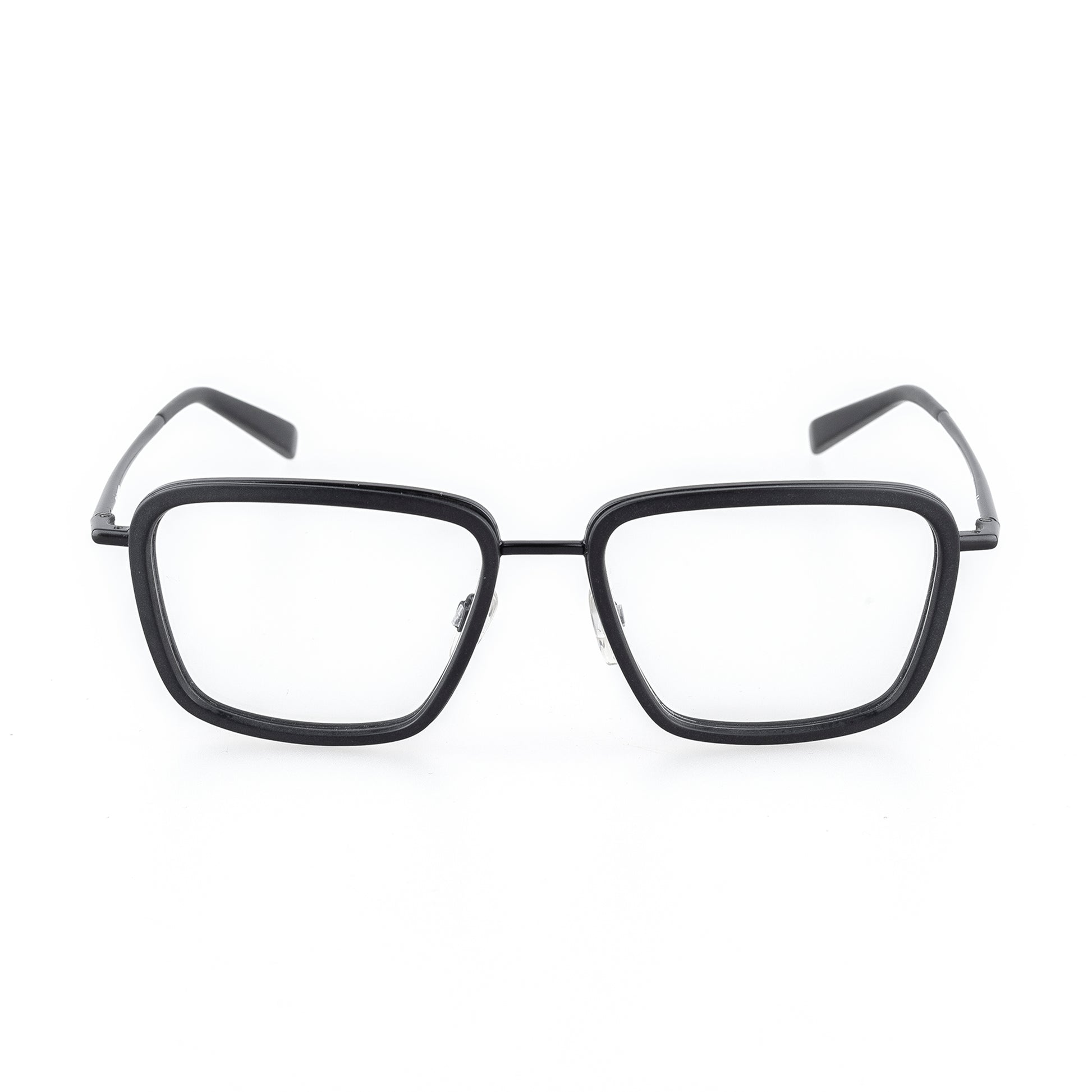 Black frame with clear (non-prescription) lenses.