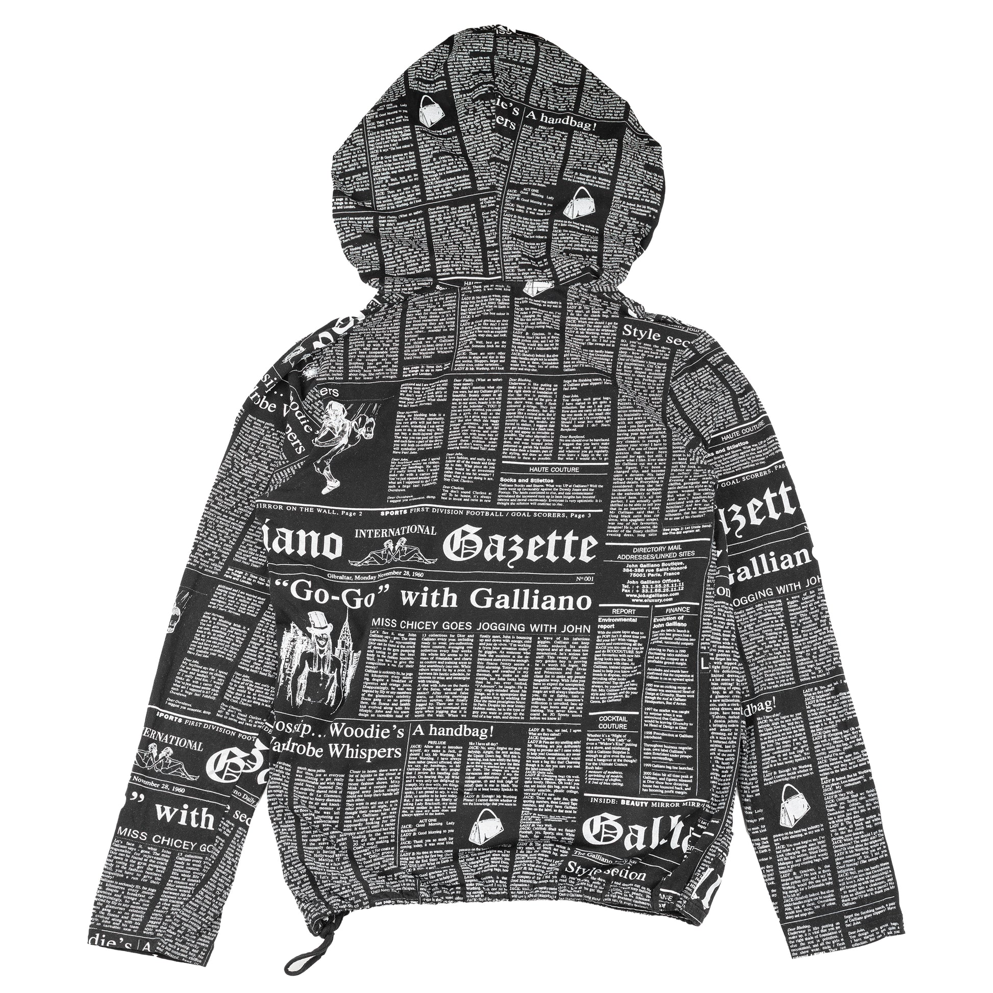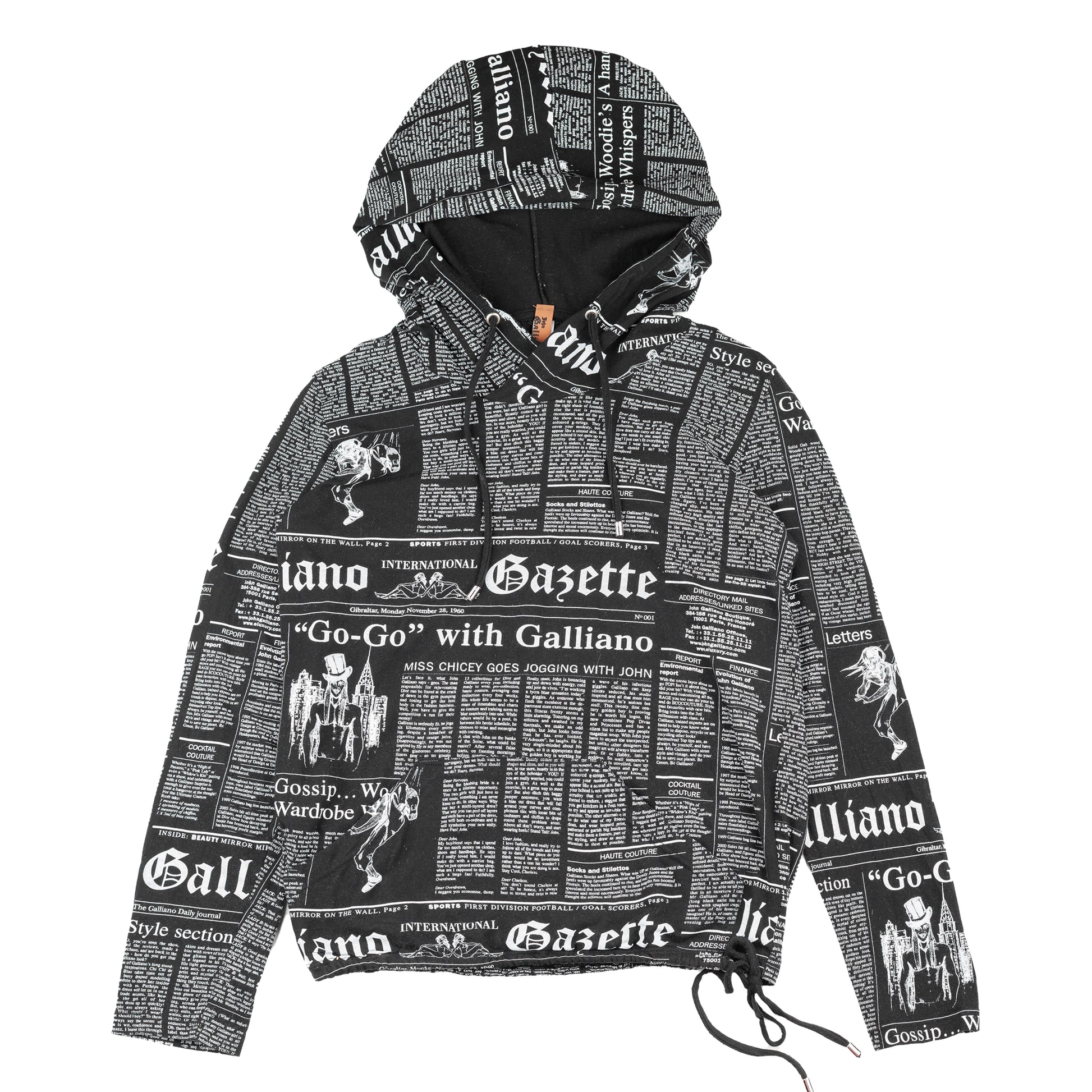 John Galliano Newspaper Gazette Black Hoodie (L)