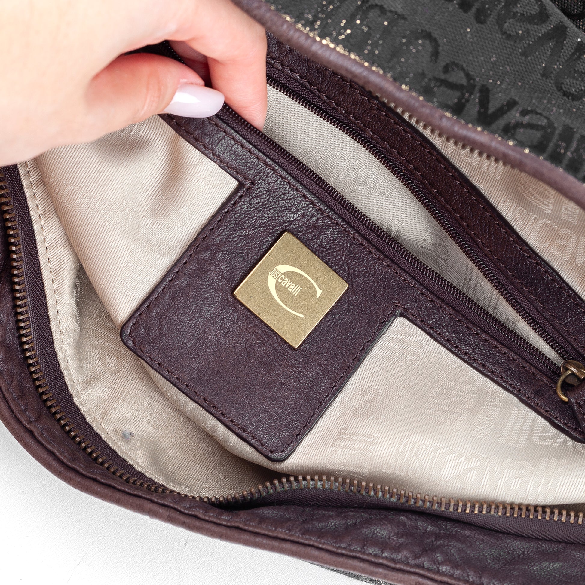Just Cavalli Vintage Studded Monogram Black/Gold Shoulder Bag