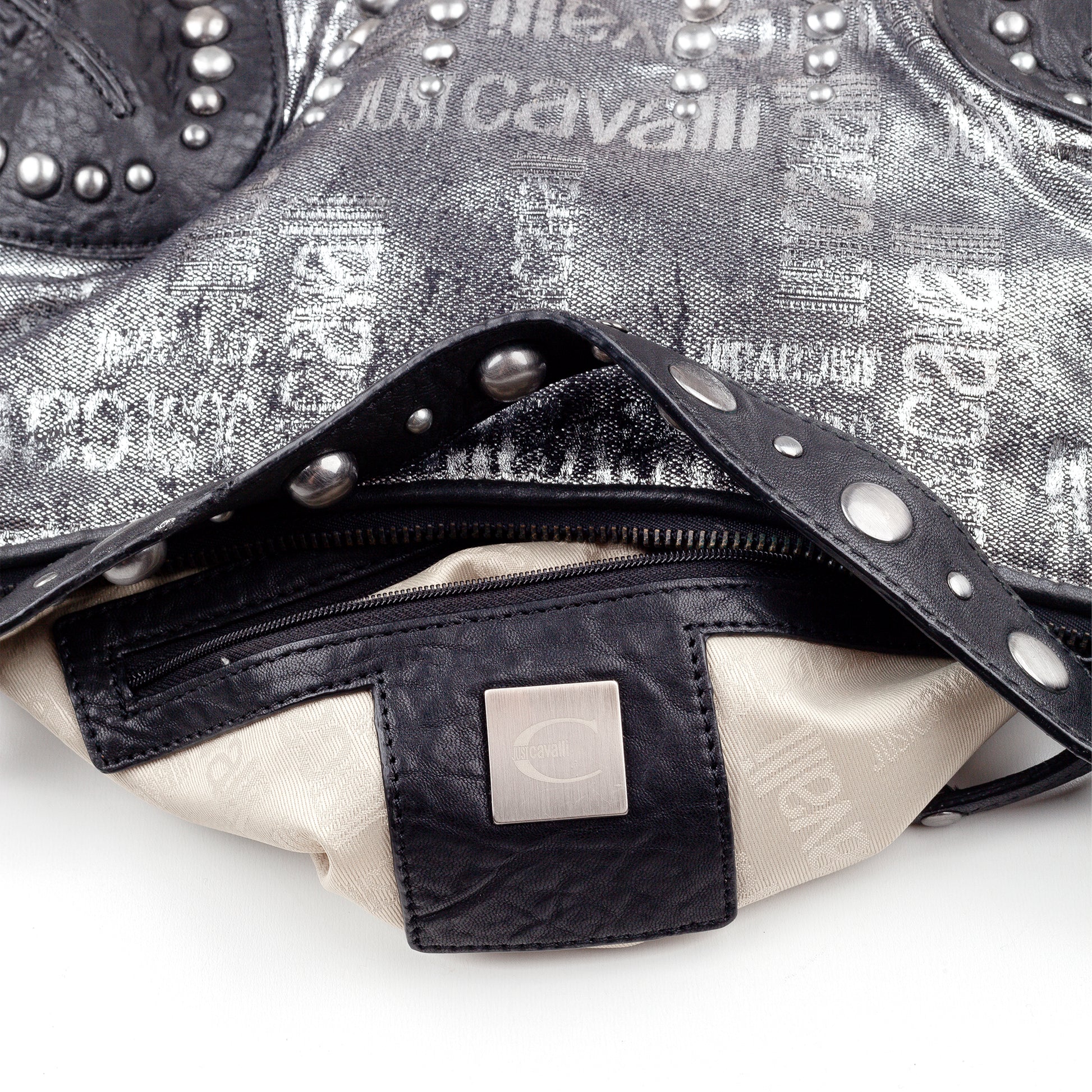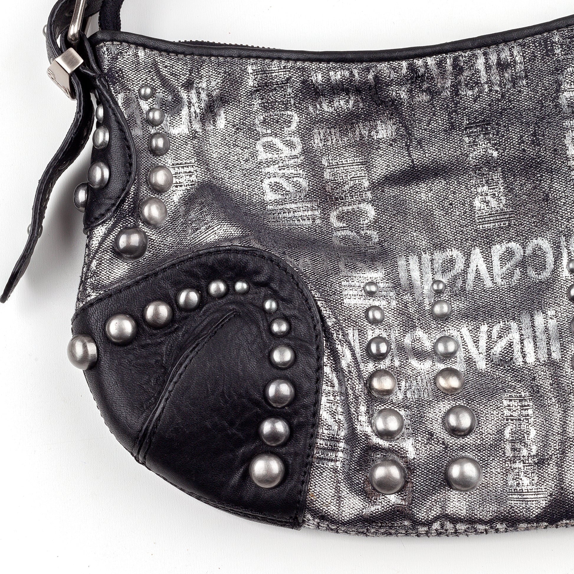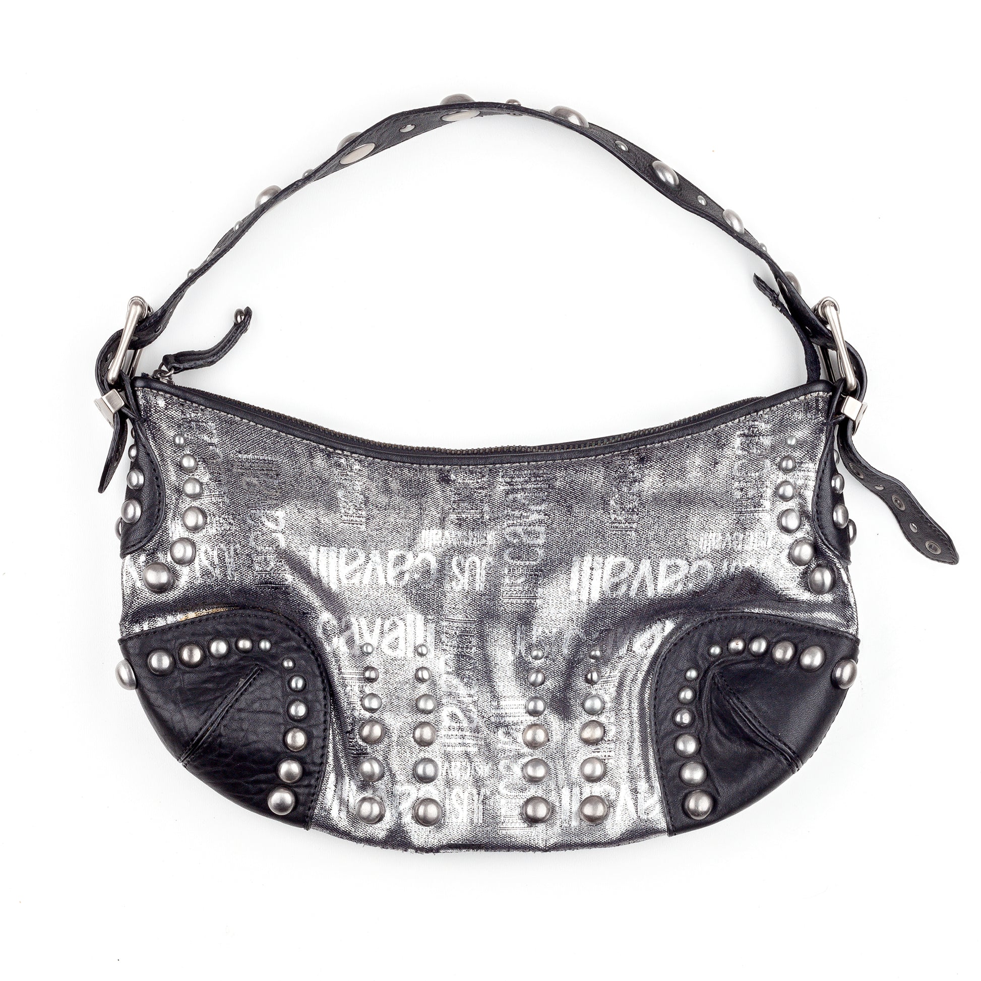 Just Cavalli Vintage Studded Monogram Black/Silver Baguette Bag