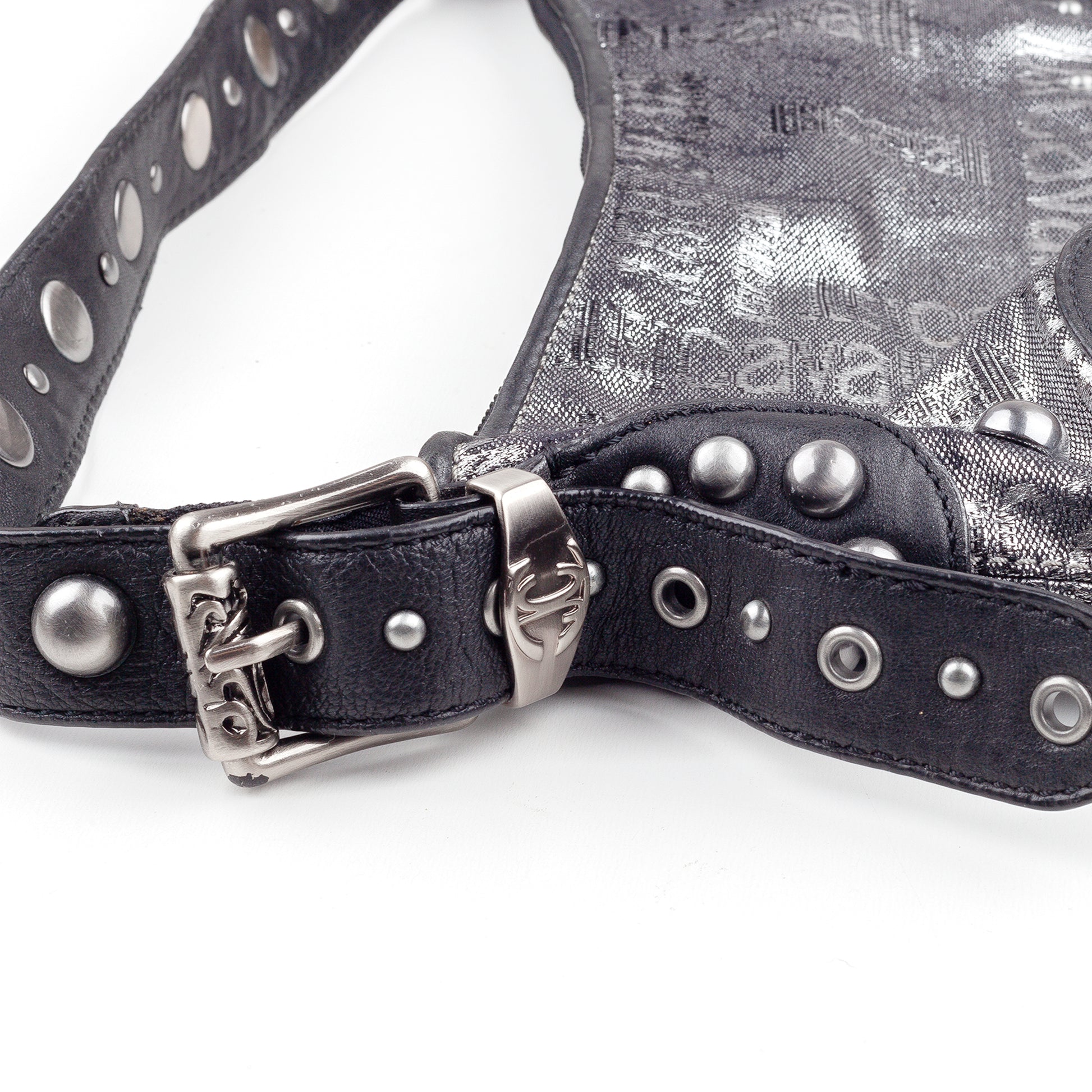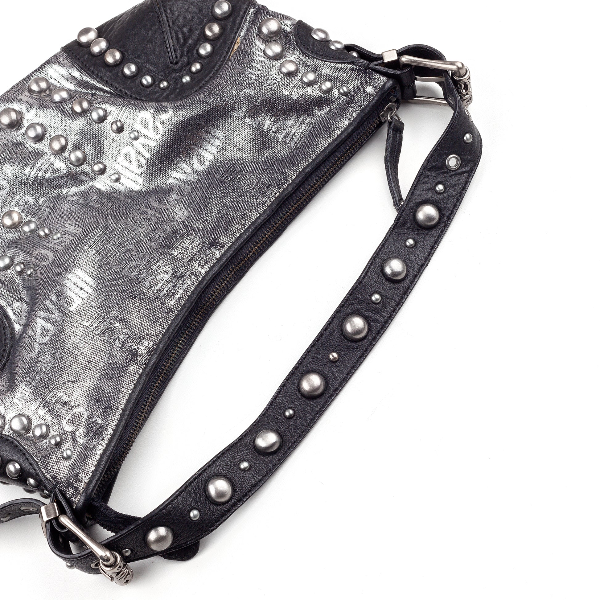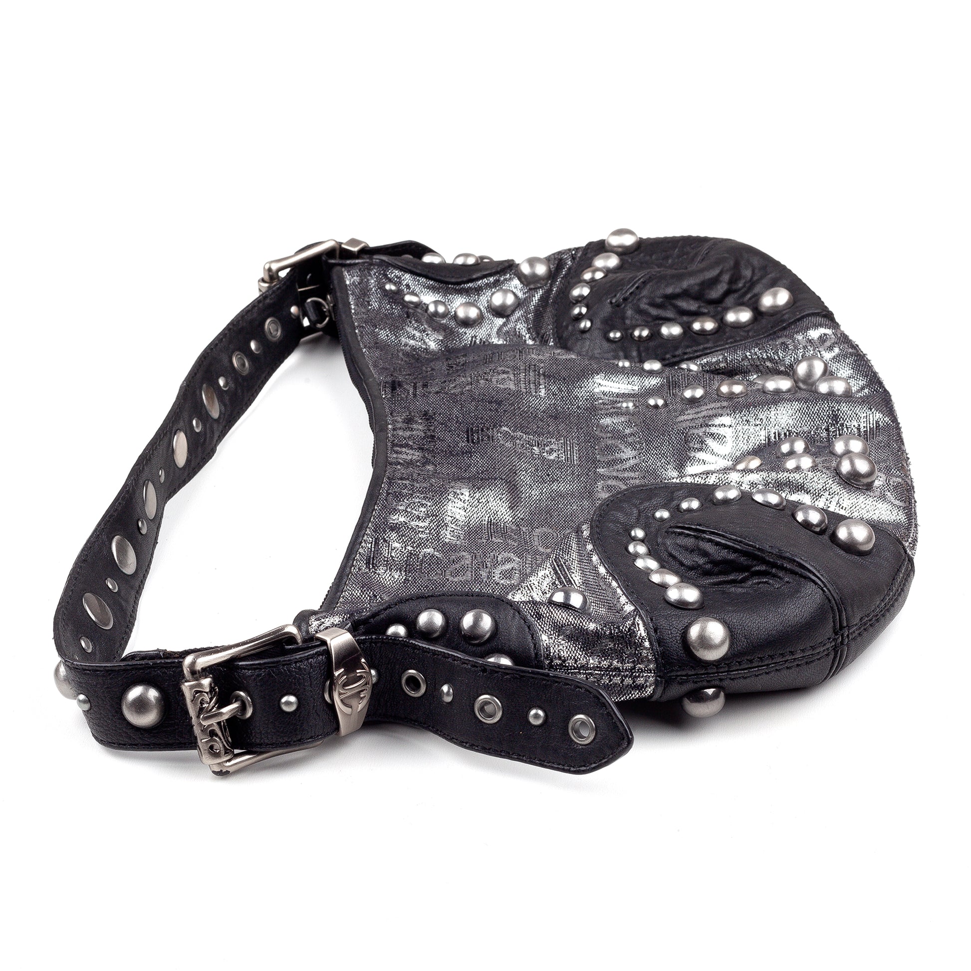 Just Cavalli Vintage Studded Monogram Black/Silver Baguette Bag