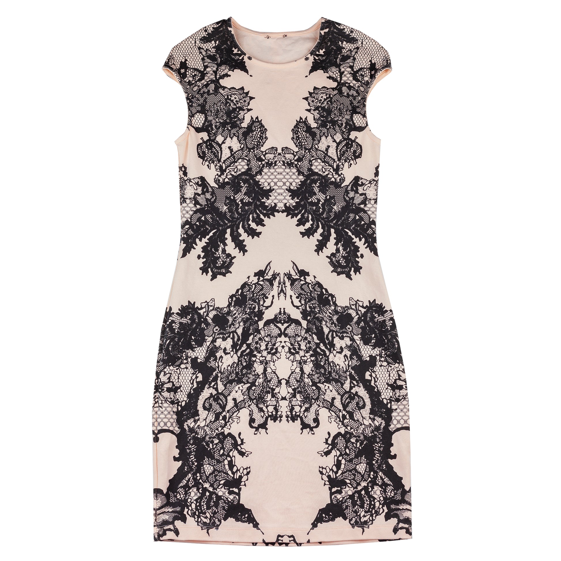 McQ By Alexander McQueen Peach Lace Print Bodycon Dress