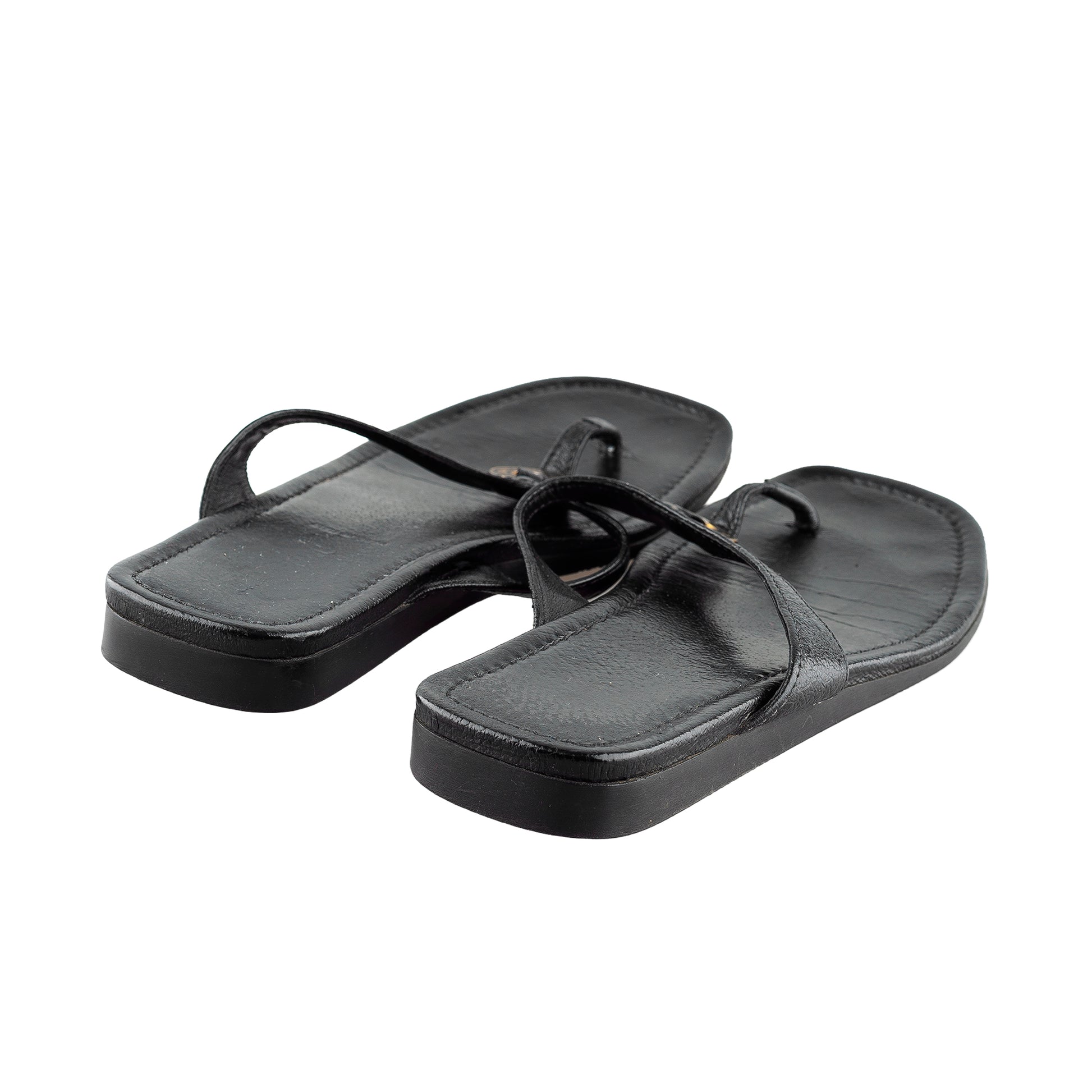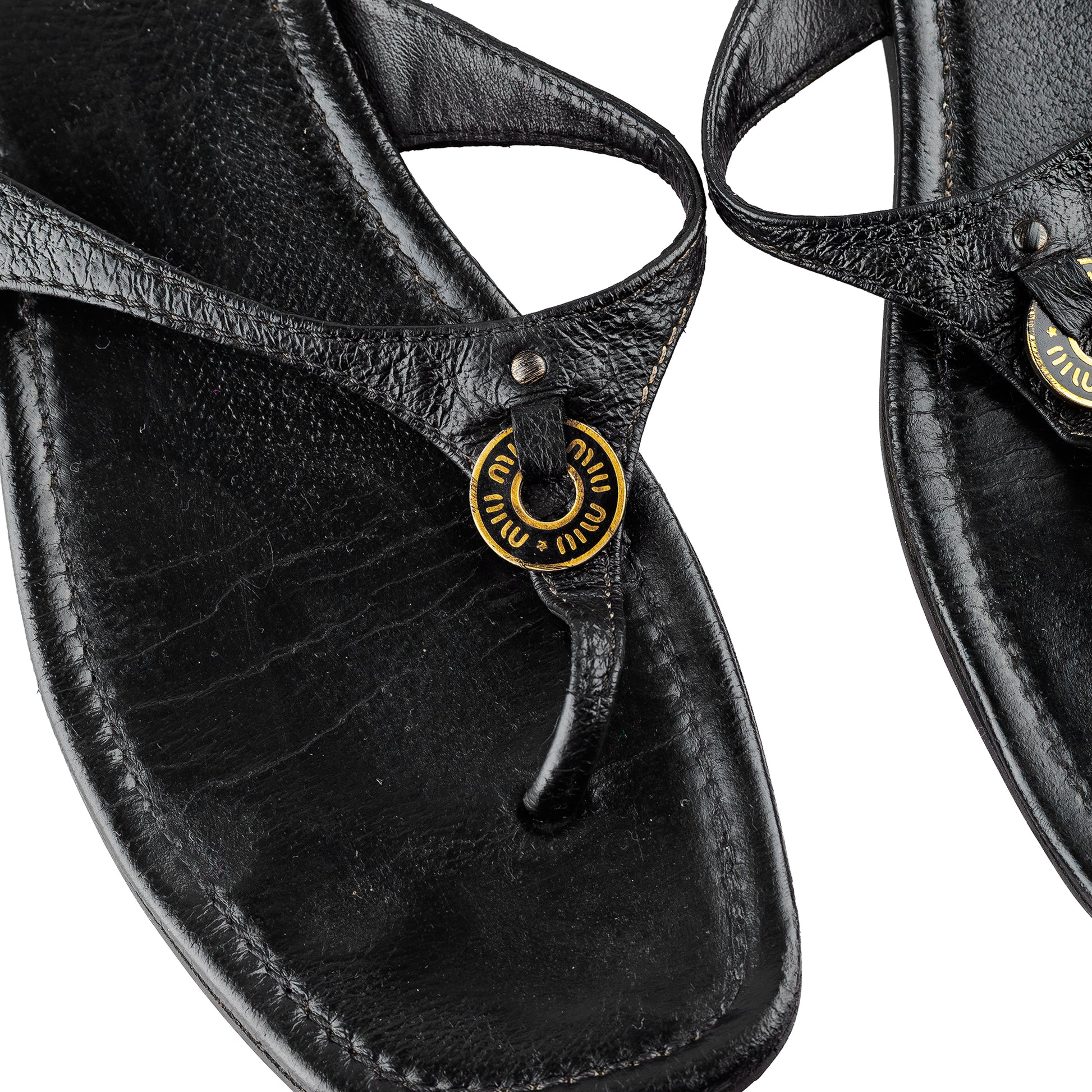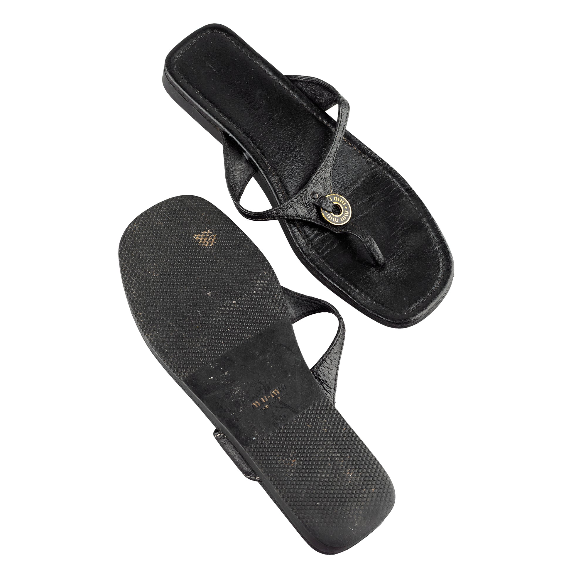 Miu Miu Vintage Black Leather Thong Sandals