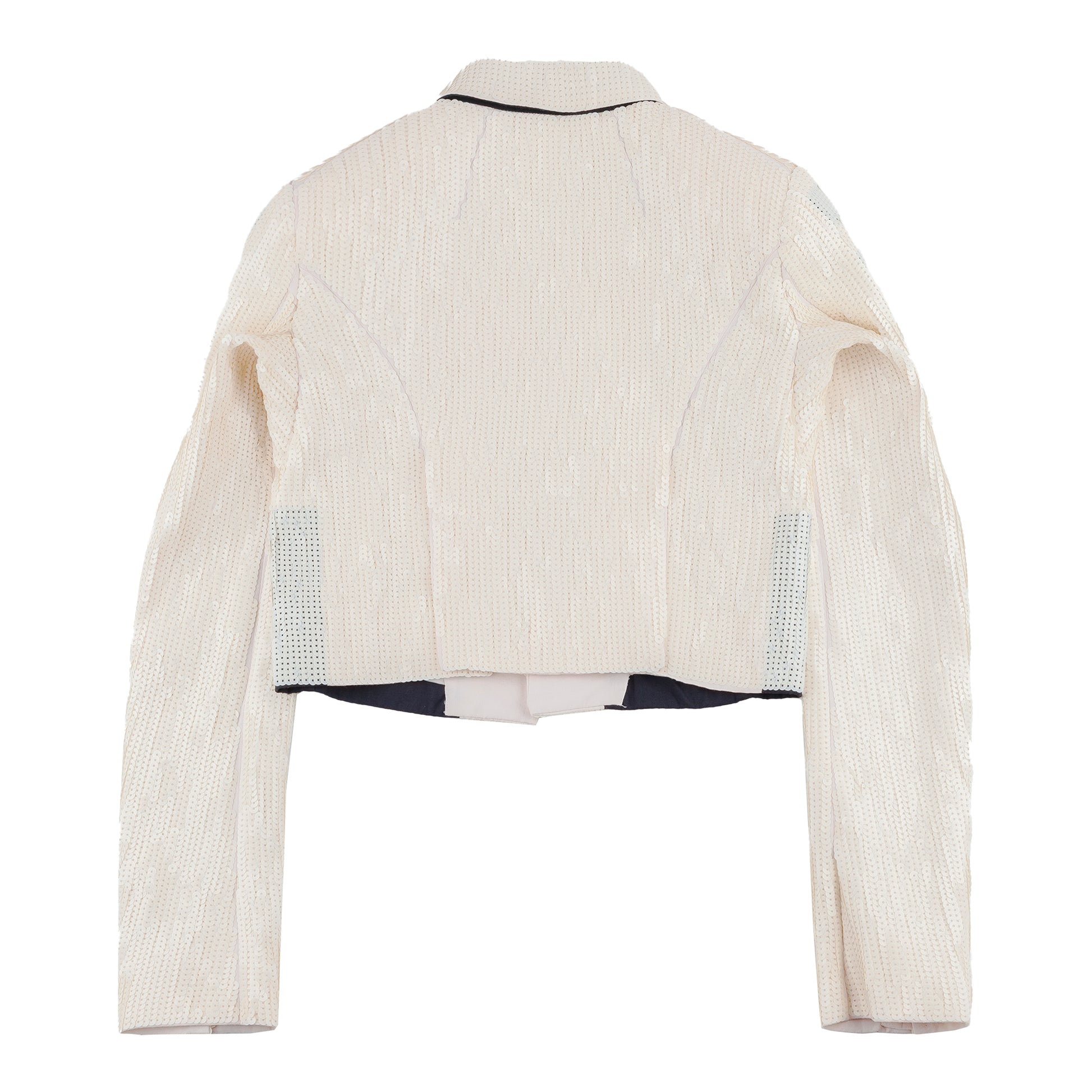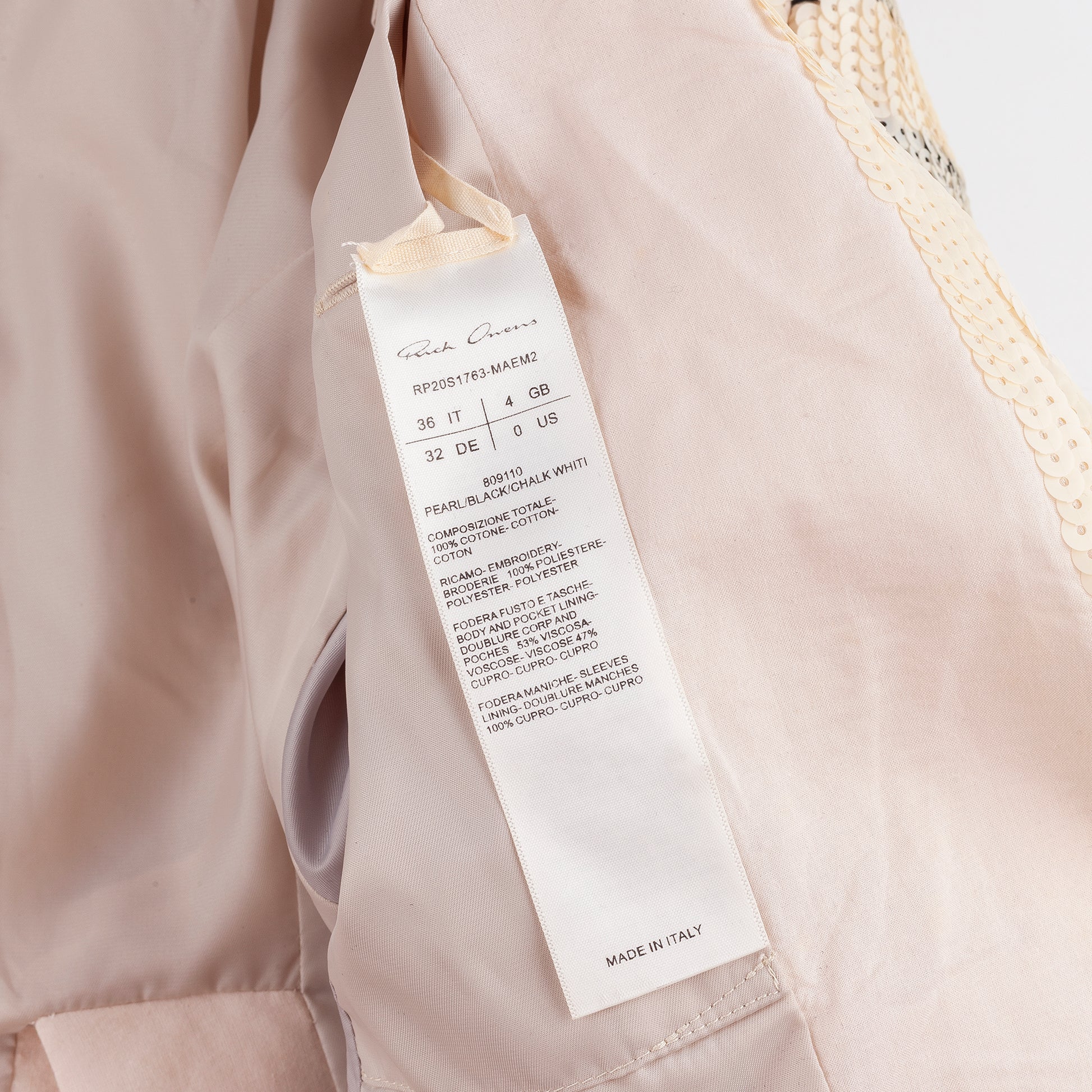 Rick Owens Runway Tecuatl 2020 Cropped Sequins White Chalk Blazer Jacket (XS/S)