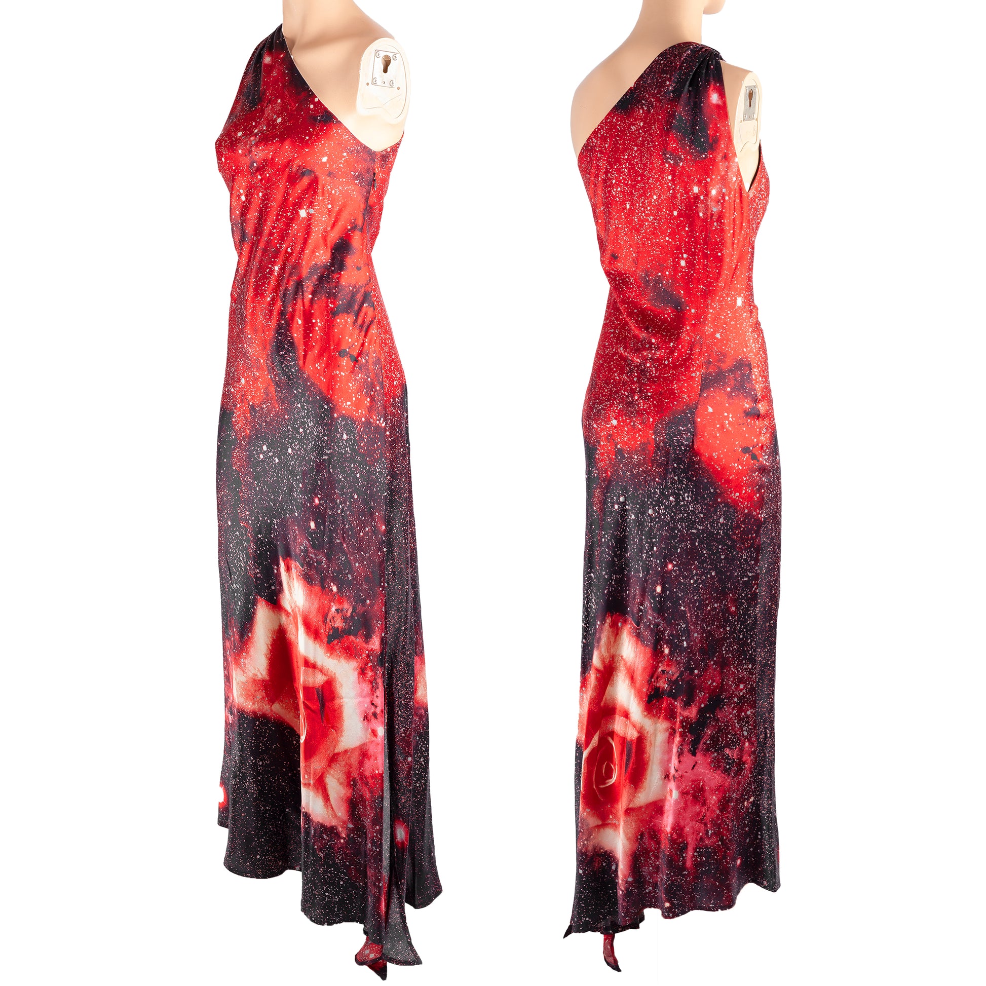 Roberto Cavalli Tessuti Rose Print One-Shoulder Dress (L)