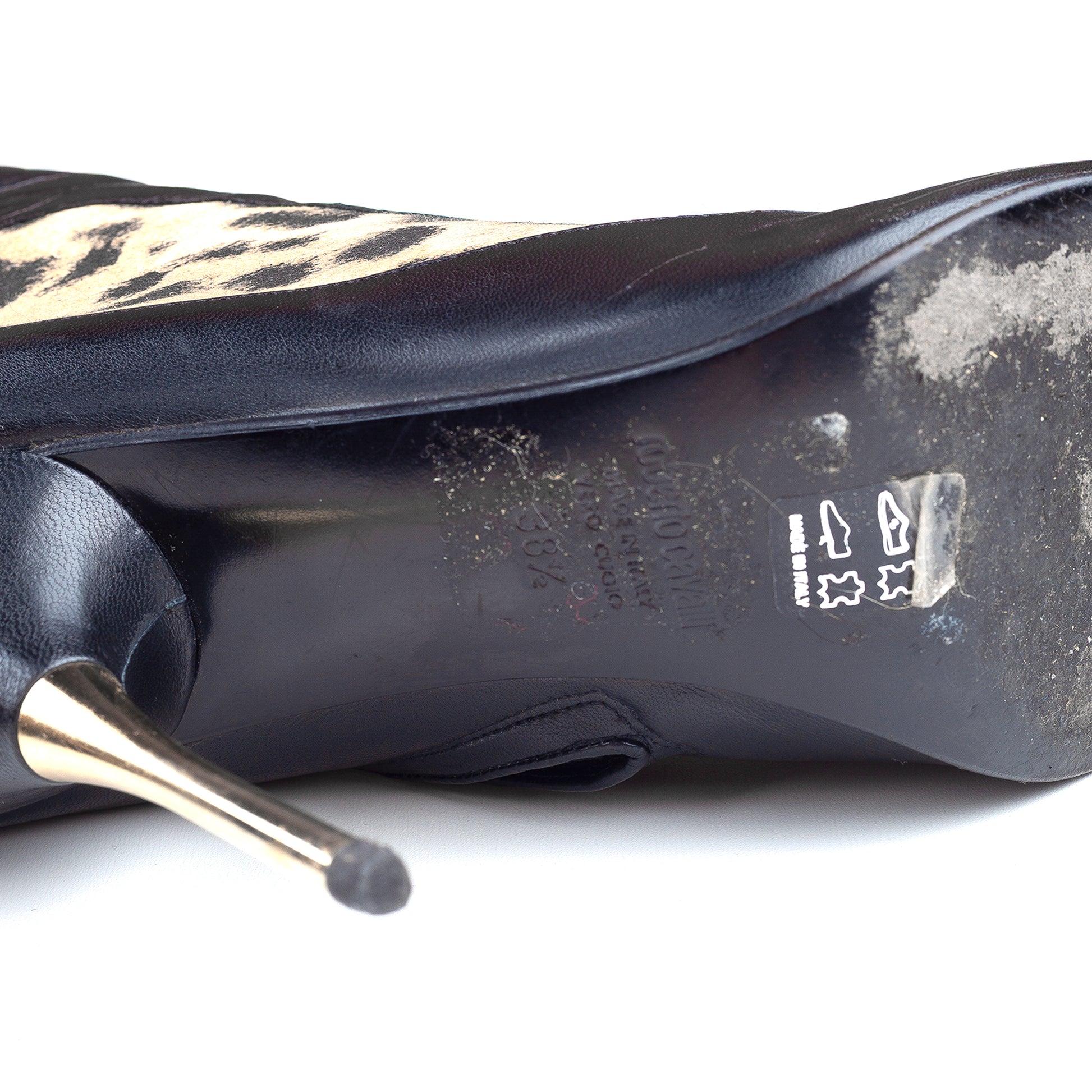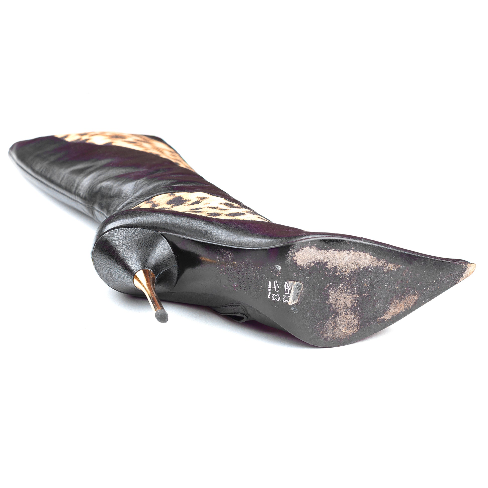 Roberto Cavalli 2002 Vintage Cheetah/Black Pointed Toe High Knee Boots (38,5 EU)