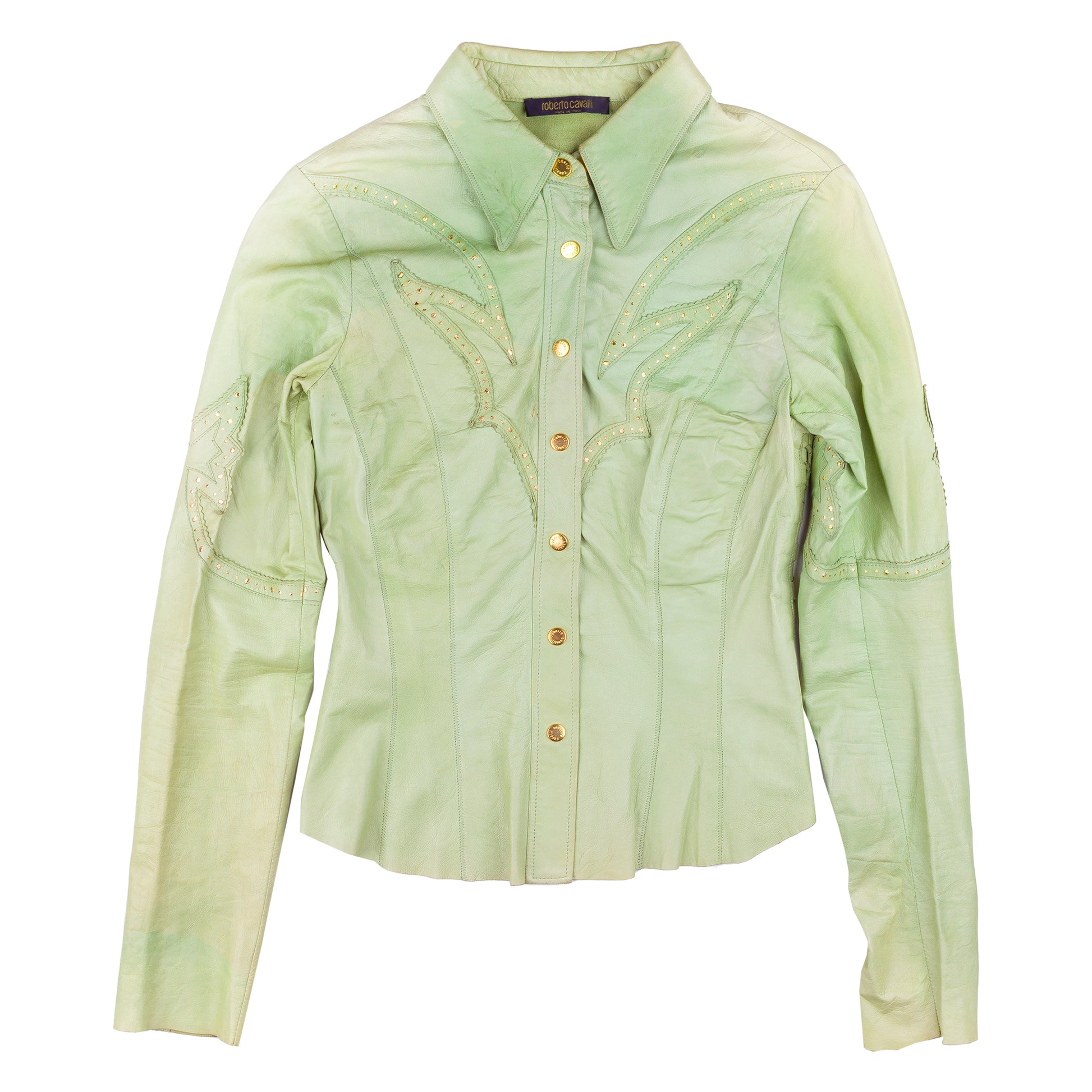 Roberto Cavalli Western Cowboy Green Leather Vintage Shirt (S)