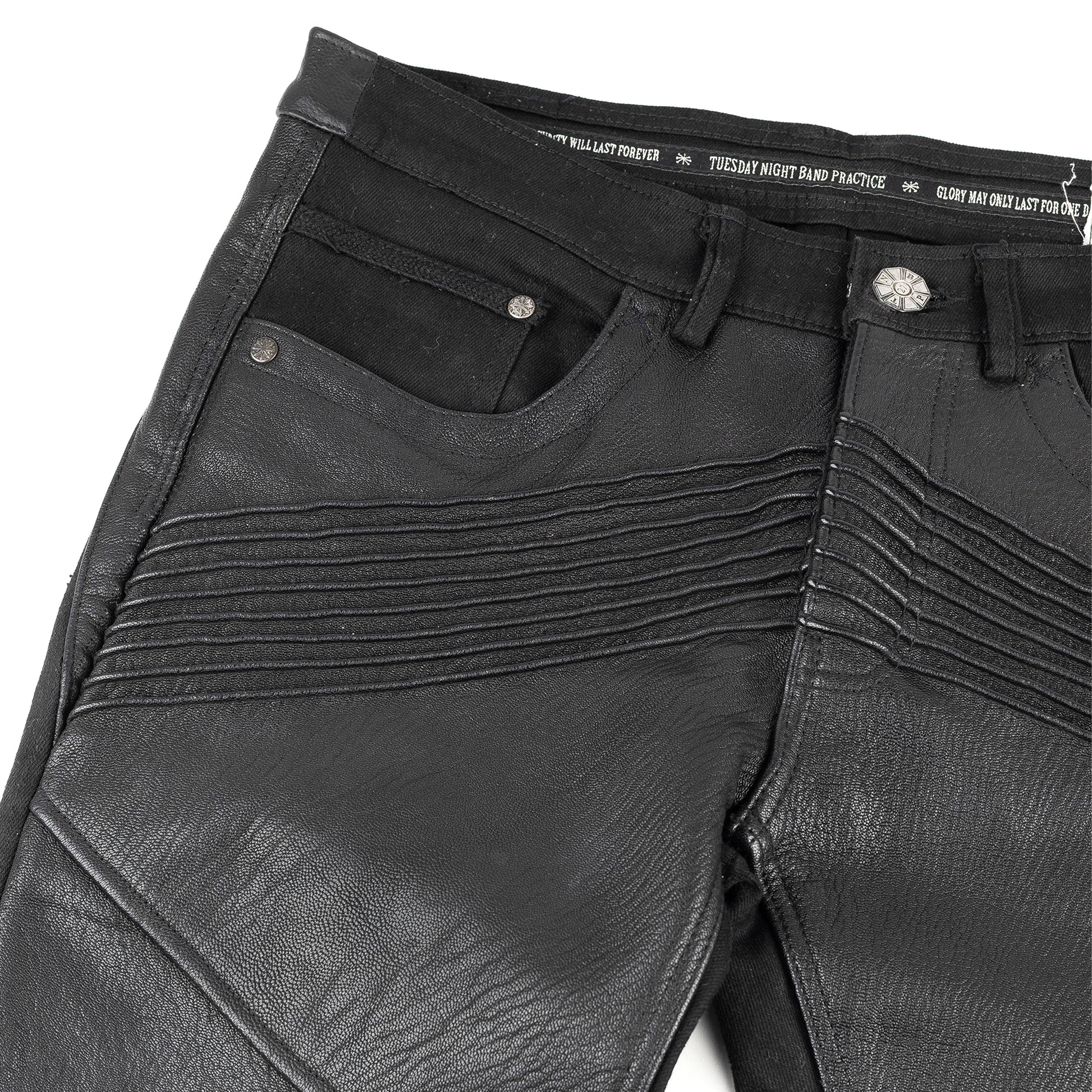 Tuesday Night Band Practice (TNBP) Leather Biker Moto Black Jeans (L)