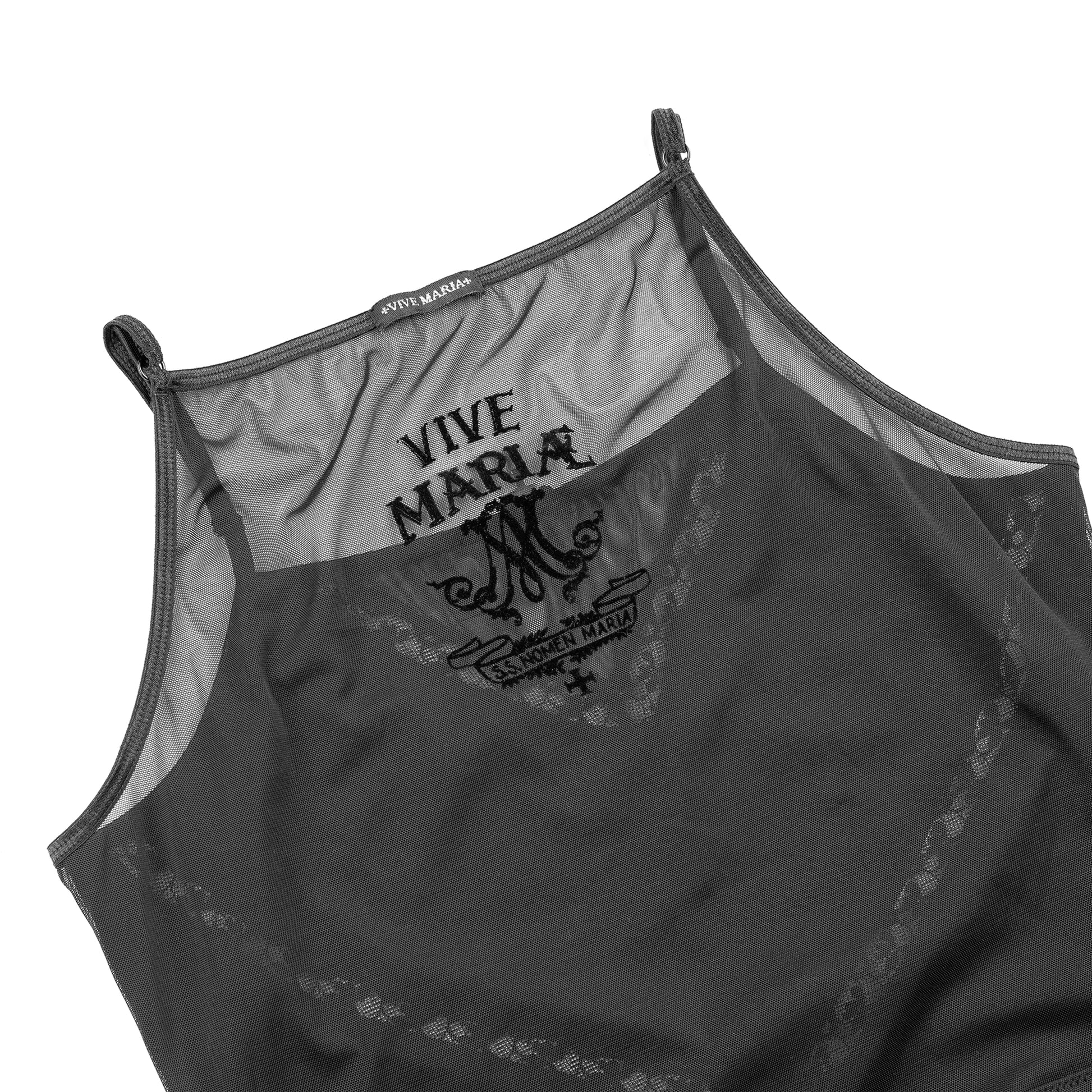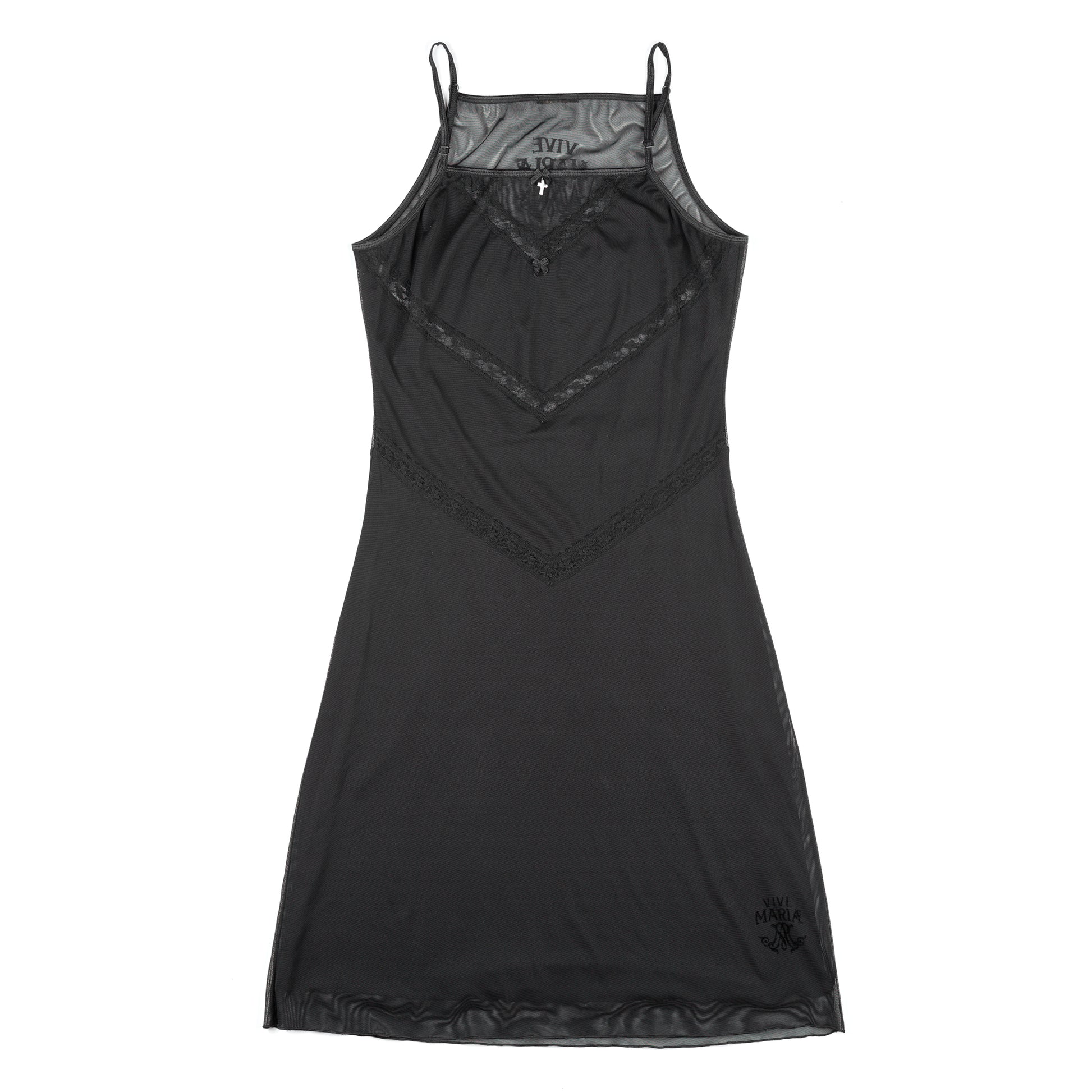 Features a transparent mesh back detail and adjustable straps. The straps show slight wear, but the dress is otherwise in excellent condition.