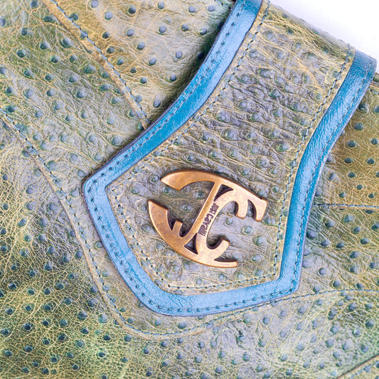 Just Cavalli Green Turquoise Ostrich Vintage Leather Bag