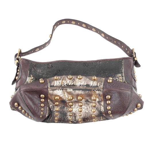 Just Cavalli Vintage Studded Monogram Black/Gold Shoulder Bag