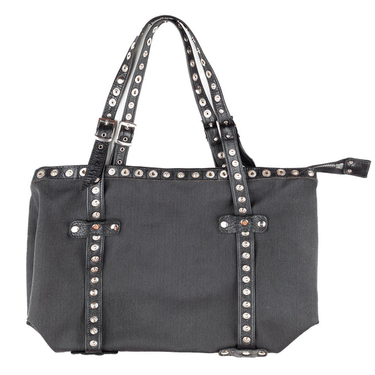 Dolce & Gabbana Black/Gray Pinstripe Eyelets Vintage Bag