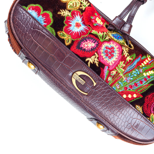 Just Cavalli Brown Floral Embroidered Vintage Shoulder Bag