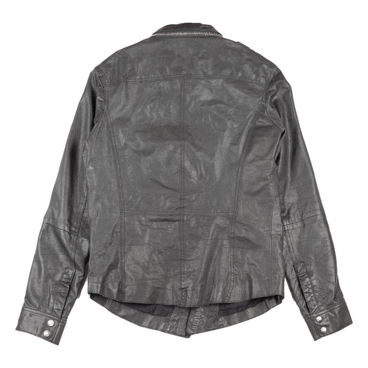 ALLSAINTS SPITALFIELDS Vintage Black Leather Button Up Jacket (M)