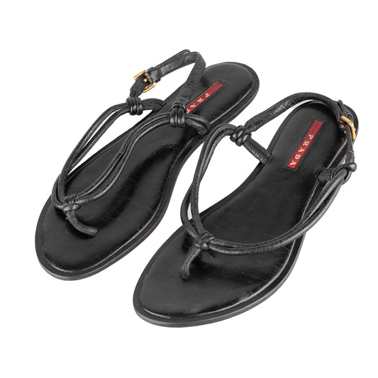 Prada Sport Vintage Black Flat Thong Sandals (37 IT / 38 EU)