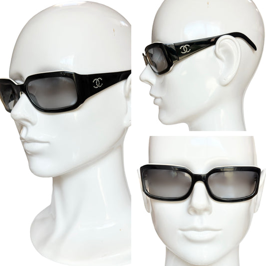 Chanel 5077-B CC Logo Shield Vintage Sunglasses with Rhinestones