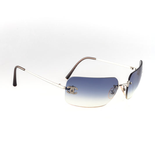 Chanel 4017-D 124/55 CC Logo Rimless Vintage Blue Gradient Sunglasses