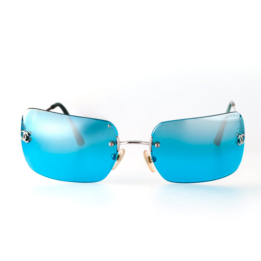 Chanel 4017 C 124/53 Vintage Blue Rimless Sunglasses