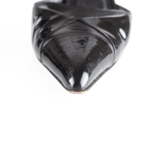 Chanel Black Vintage Leather Pointed Toe Heels With Metallic Details