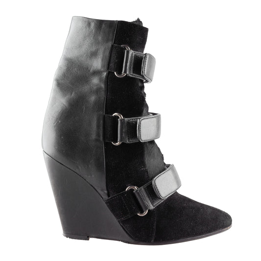Isabel Marant Lazio Black Fur Suede Wedge Boots (37 IT/ 38 EU)