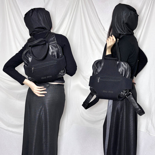 RARE Miu Miu 1999 Black Leather Nylon Convertible Bag/Backpack