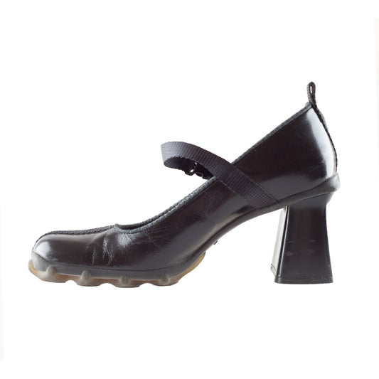 Miu Miu F/W 1999 Mary Jane Bubble Sole Buckle Black Vintage Heels (38 EU)