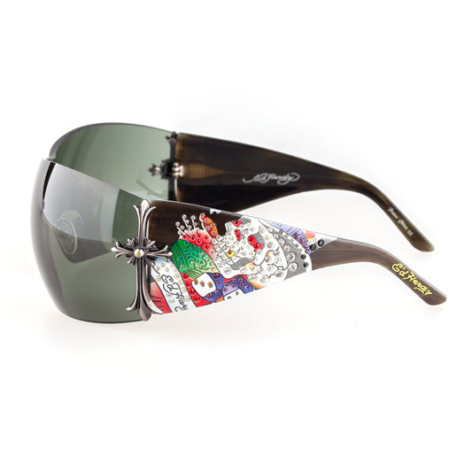 Ed Hardy by Christian Audigier EH0008 Olive Cross Shield Vintage Tattoo Sunglasses